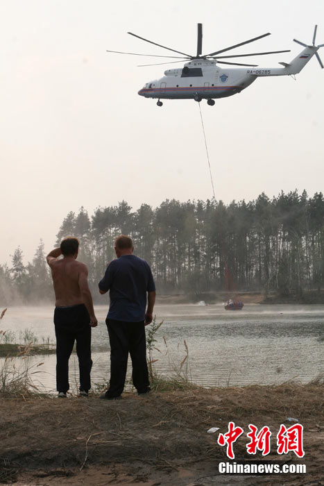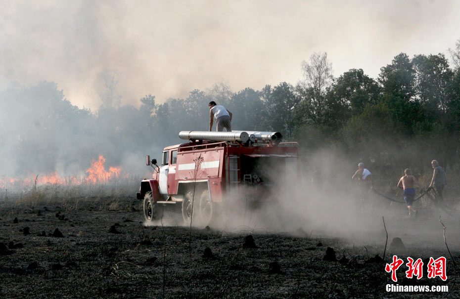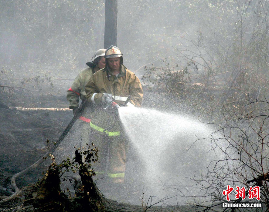8月5日,在距莫斯科市區約90公里的莫斯科州普羅塔瓦村附近,消防人員正在全力滅火。