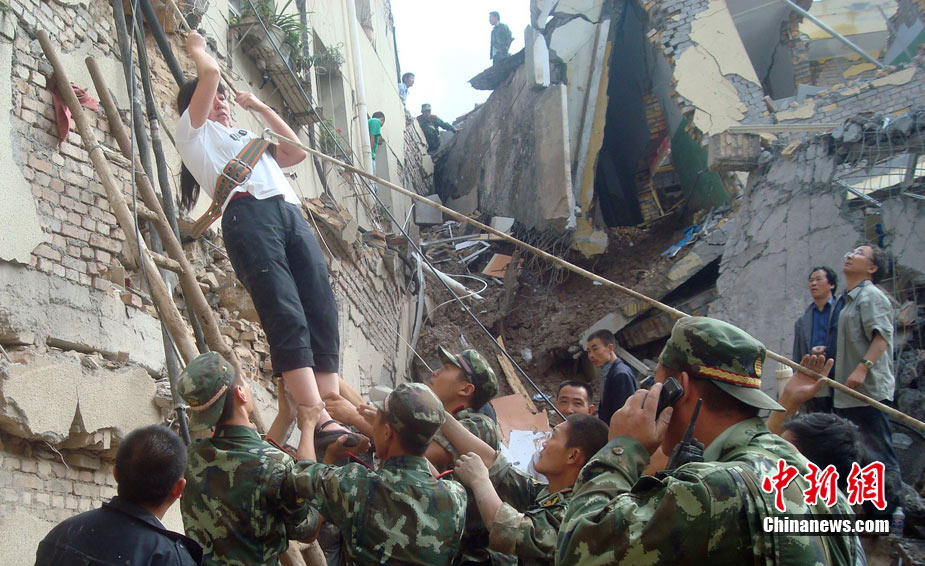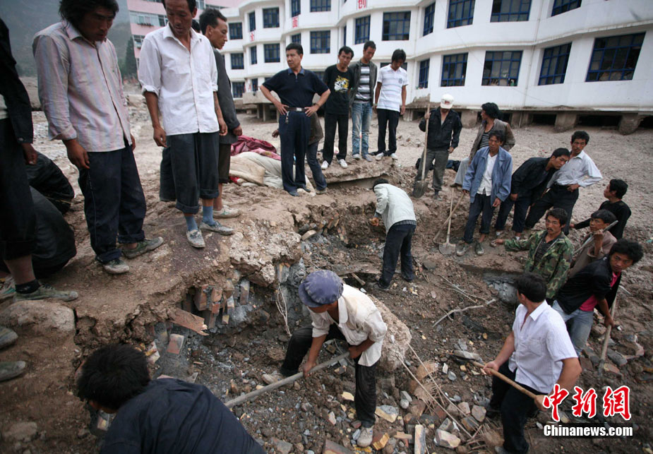 8月9日,甘肅舟曲泥石流災區搜救進入第二天。圖為消防官兵正在搜尋失蹤人員。中新社發 劉忠俊 攝