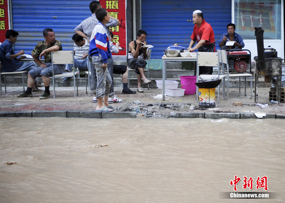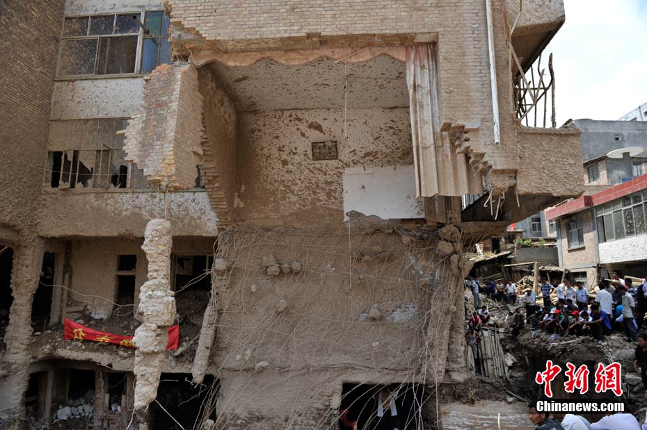 舟曲縣城內被泥石流沖毀的建筑。中新網記者 金碩 攝
