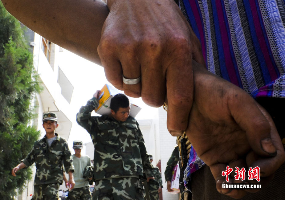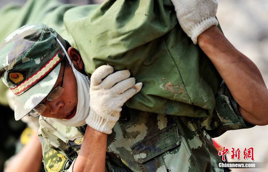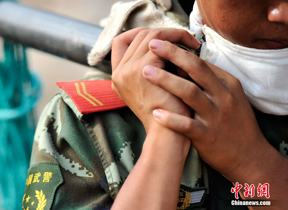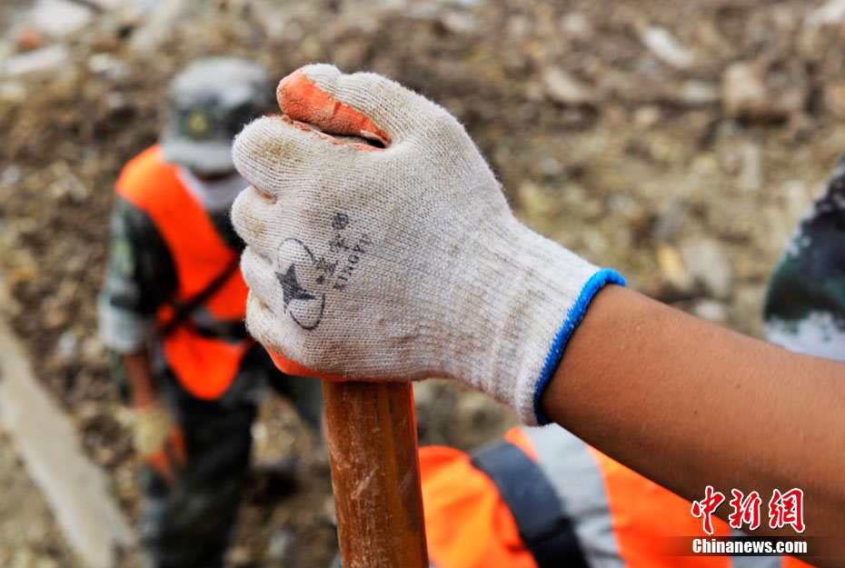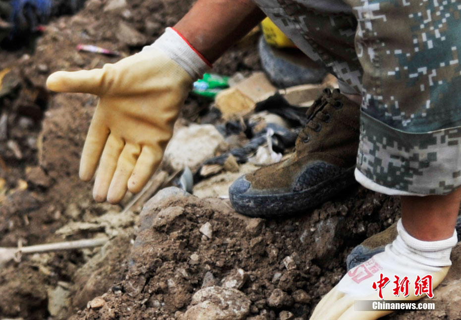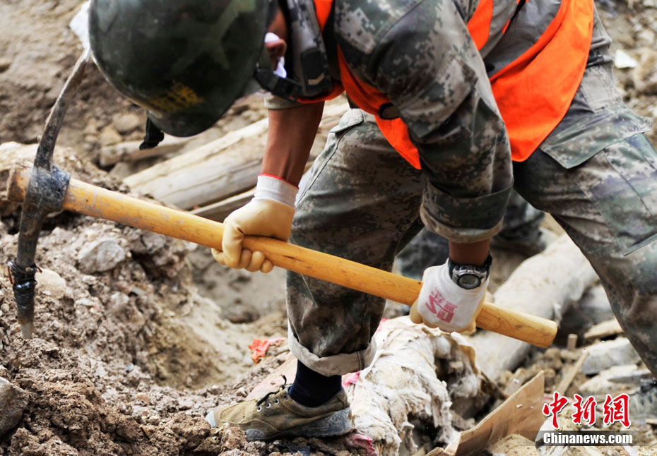 8月10日 舟曲救援進入到第三天,解放軍武警官兵們在廢墟中尋找著一切希望。中新網記者 金碩 攝