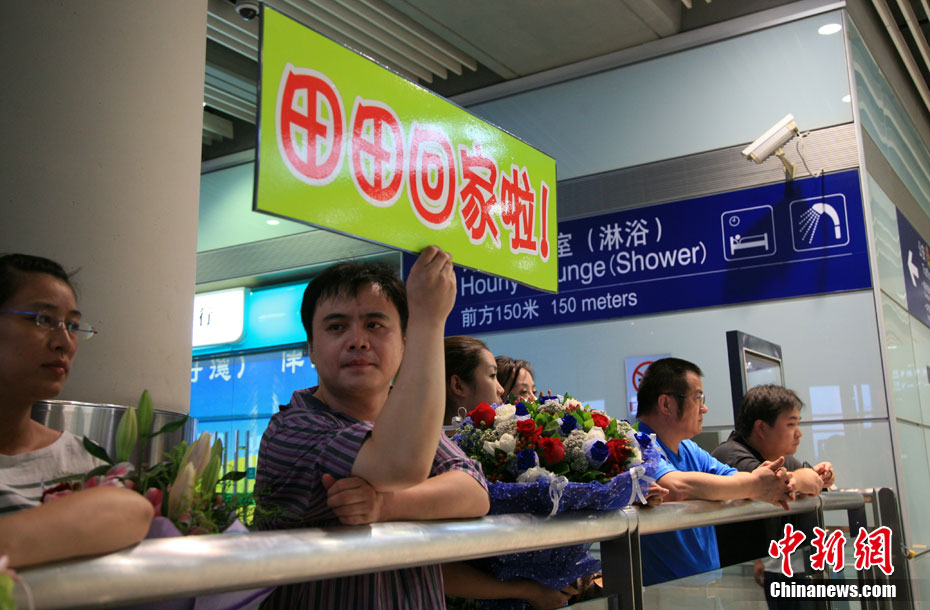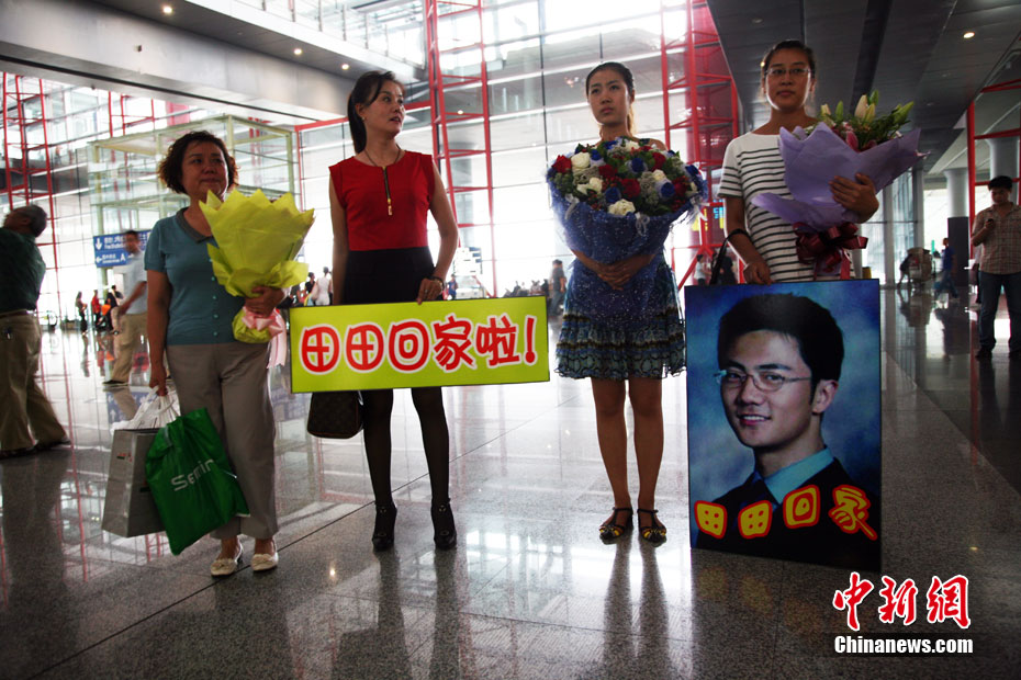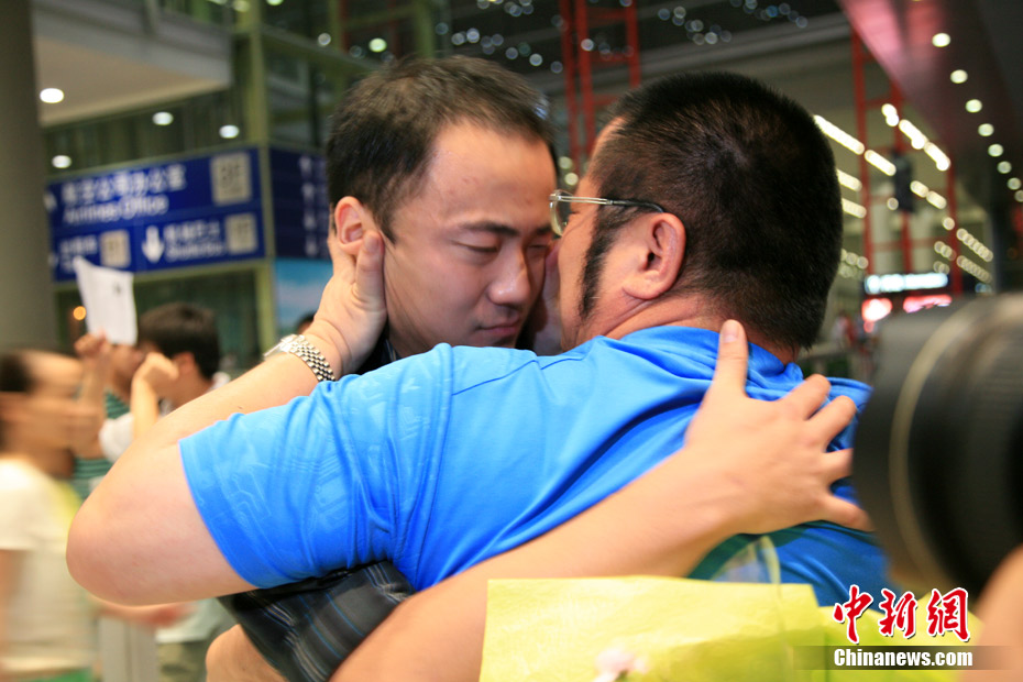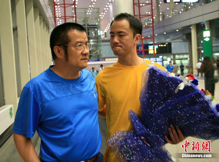 8月10日晚間,被控以“恐怖威脅”罪而被逮捕的中國留美博士生翟田田,自紐約肯尼迪國際機場抵達北京首都國際機場。在異國他鄉經歷約4個月的牢獄之災后,翟田田終于憑藉“自動離境”權利離美歸國。今年4月份,在美國新澤西州攻讀博士學位的翟田田因與校方發生矛盾,以“恐怖威脅”罪名被逮捕,并遭校方退學并被美國移民局關入移民監獄。圖為翟田田與8年未曾謀面的父親相擁而泣。中新網記者 張冬冬 攝