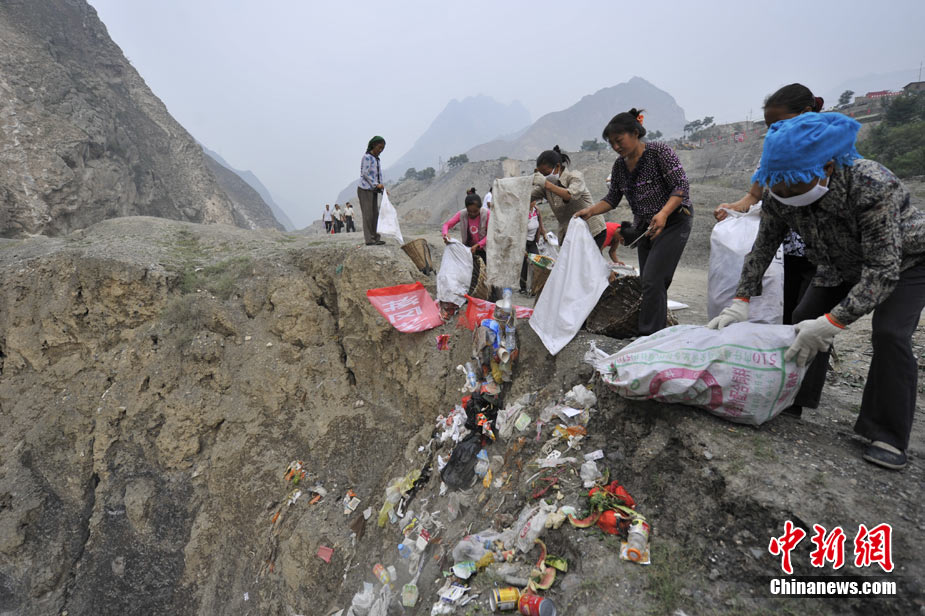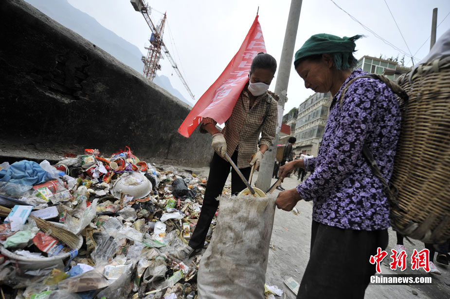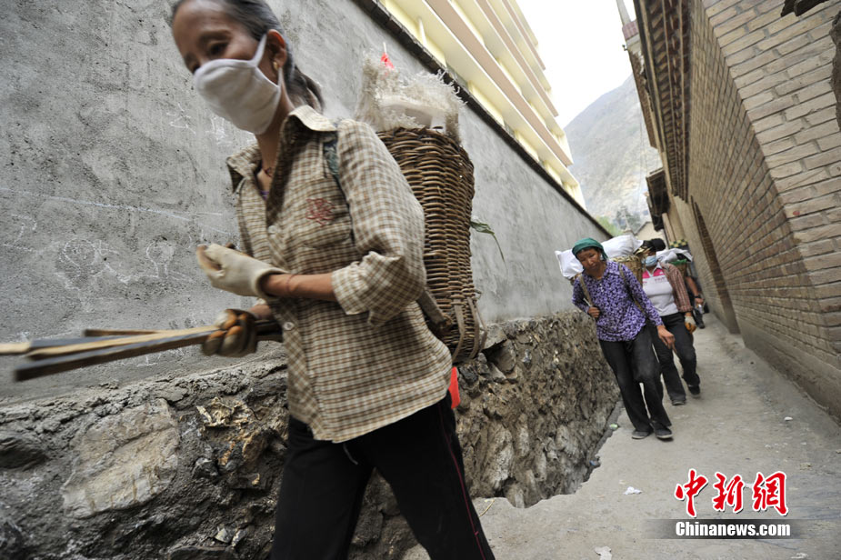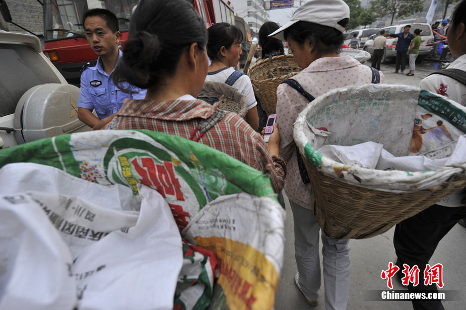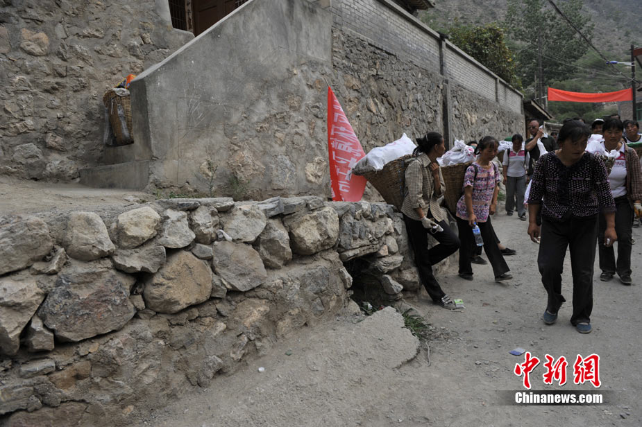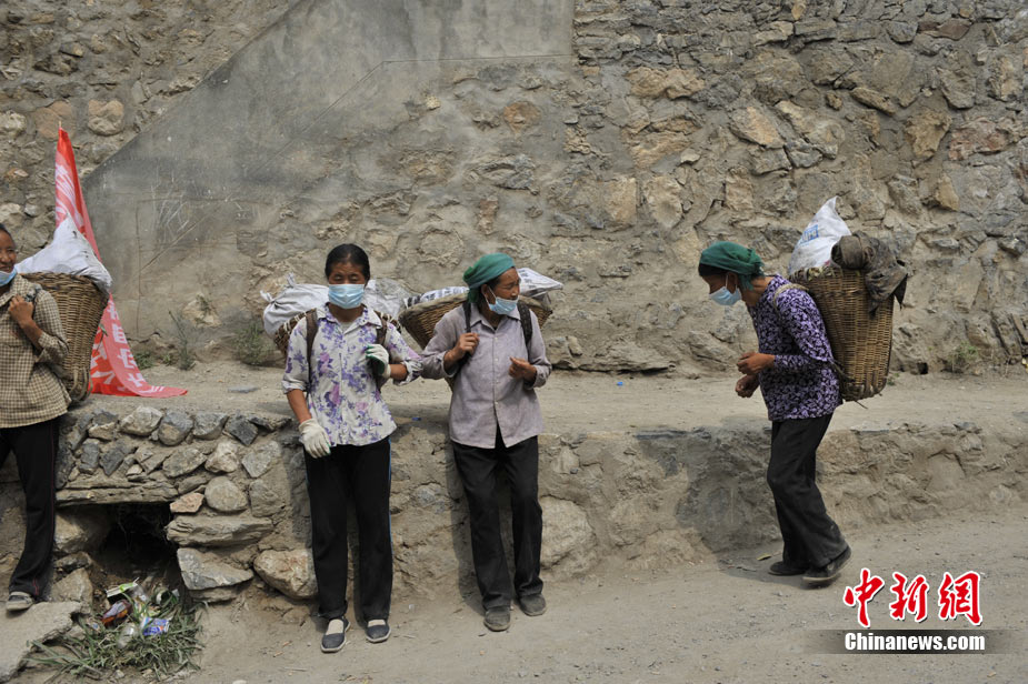 從早上8點(diǎn)到12點(diǎn),一上午這支“突擊隊(duì)”來回四趟,天氣炎熱,雖然對地形非常熟悉,她們休息的次數(shù)越來越多,步子也慢了起來。休息間歇,記者問起,這次清運(yùn)垃圾政府會不會給些工資,大家都笑而不語!敖o不給錢無所謂,發(fā)生這么大的事情,幫點(diǎn)忙也是應(yīng)該的!眹(yán)鄺條對記者說。