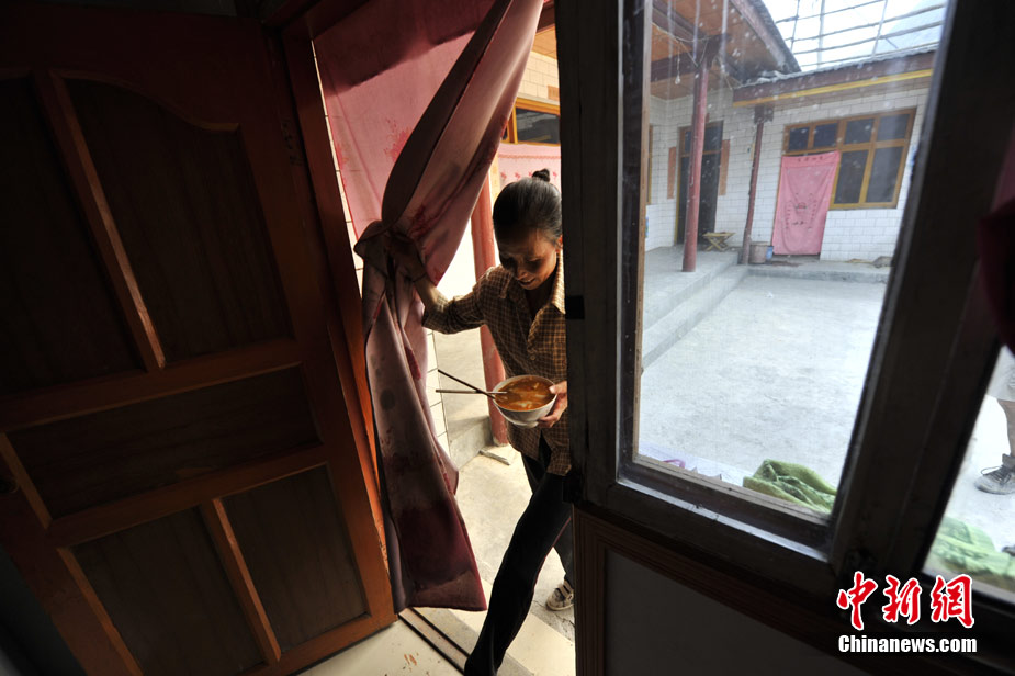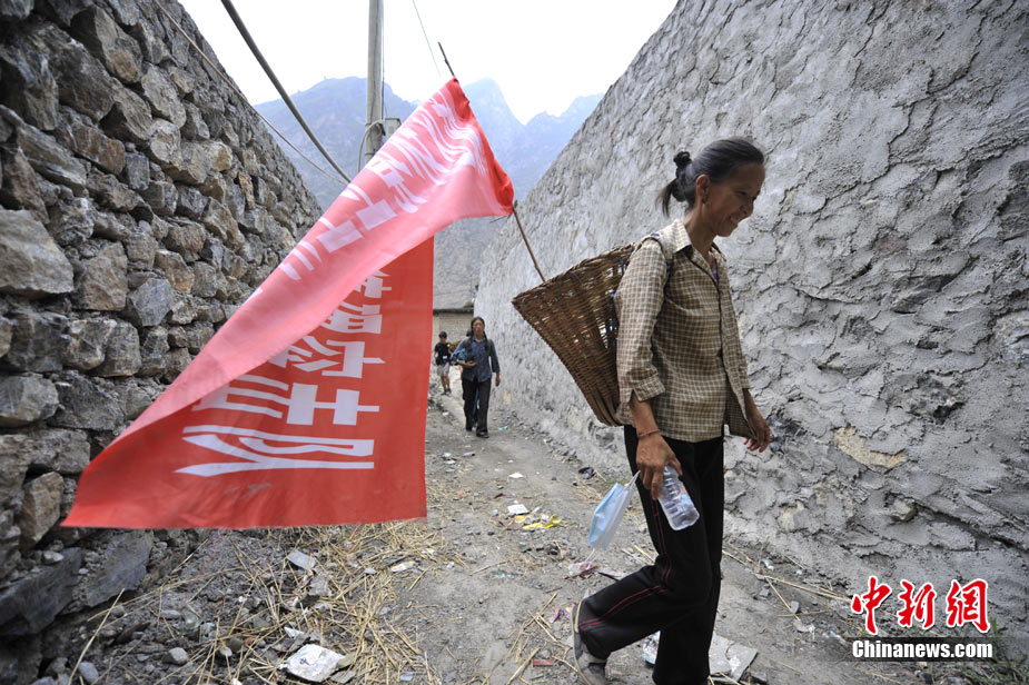王旻桂所在鎖兒頭村,除了有輕微滑坡外,受到本次泥石流災(zāi)害的影響并不大,王旻桂家里還有存糧,在外打工的丈夫聽到災(zāi)難的消息,也趕了回來,一家人因?yàn)闉?zāi)難團(tuán)聚到一起!胞溩邮胀炅,在家也沒有事,過來幫幫忙!泵鎸τ浾撸旻桂并不善言辭。