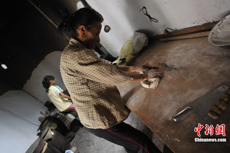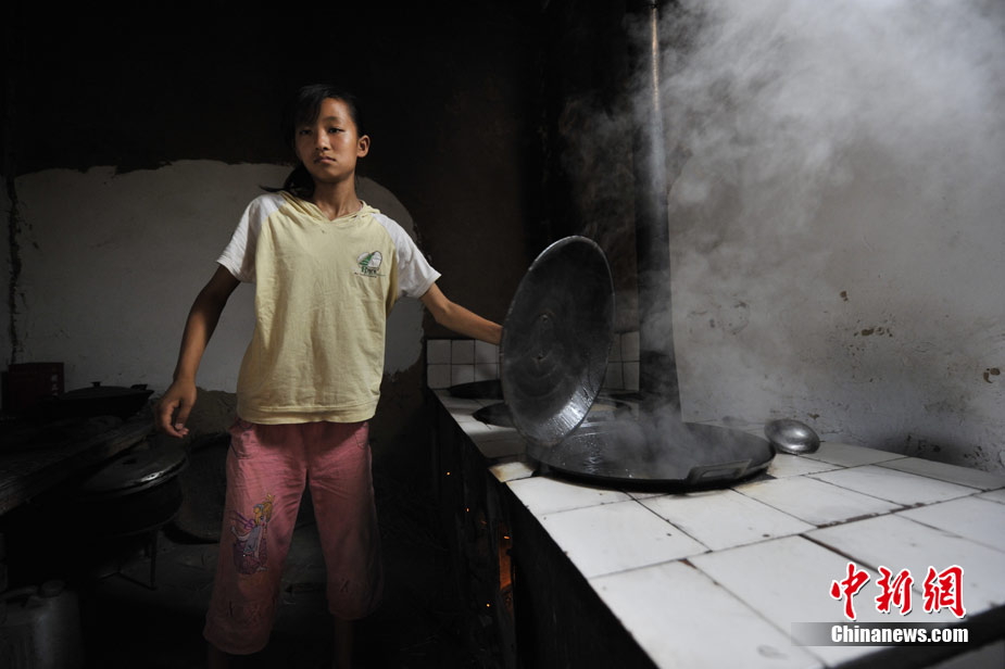 王旻桂的丈夫,因?yàn)樵缟先兔葹?zāi)弄傷了腿,她到家時飯還沒做。洗洗手后,王旻桂立即招呼兩個孩子開始準(zhǔn)備午飯,生火、揉面……,不一會,西北特色的湯面片就已經(jīng)上桌。