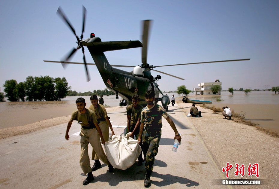 8月11日,巴基斯坦,洪水進(jìn)入信德省中部,一位災(zāi)民被救上直升飛機(jī)。7月下旬以來,巴基斯坦遭遇自1929年以來最嚴(yán)重的洪澇災(zāi)害。據(jù)估計,洪災(zāi)影響到該國從北到南的廣大區(qū)域,已導(dǎo)致1200多人喪生,1400多萬人受到影響。