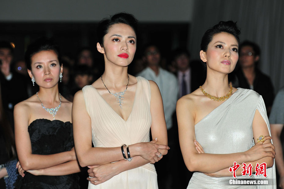 8月12日晚,永恒印記“Shining Light”鉆飾設(shè)計大賽獲獎作品全球首展在北京舉行。30位來自南部非洲的年輕設(shè)計師以25000顆總重達630克拉的美鉆向世界展示了他們在鉆石設(shè)計領(lǐng)域的極致才華。姚晨(中)、高圓圓(右)、董潔等藝人盛裝前來助陣。中新社發(fā) 李學仕 攝