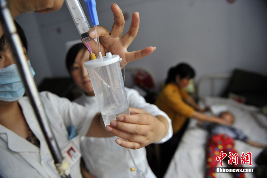 李艷菲有雙非常明亮的眸子,時常定定地看著一個地方出神。媽媽薛紅芳這幾天眼睛已經哭腫了,一看見女兒額頭上的瘀傷就淚水漣漣。丈夫外出打工趕不回來,這個受了驚嚇的女人顯得有些手足無措。7日晚孩子跌傷后,薛紅芳和婆婆跌跌撞撞連夜將孩子送到縣醫院,可這時醫院已經斷電陷入混亂。在驚恐中等了一夜,孩子終于住進了病房里。