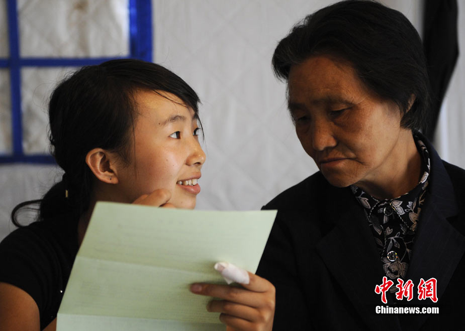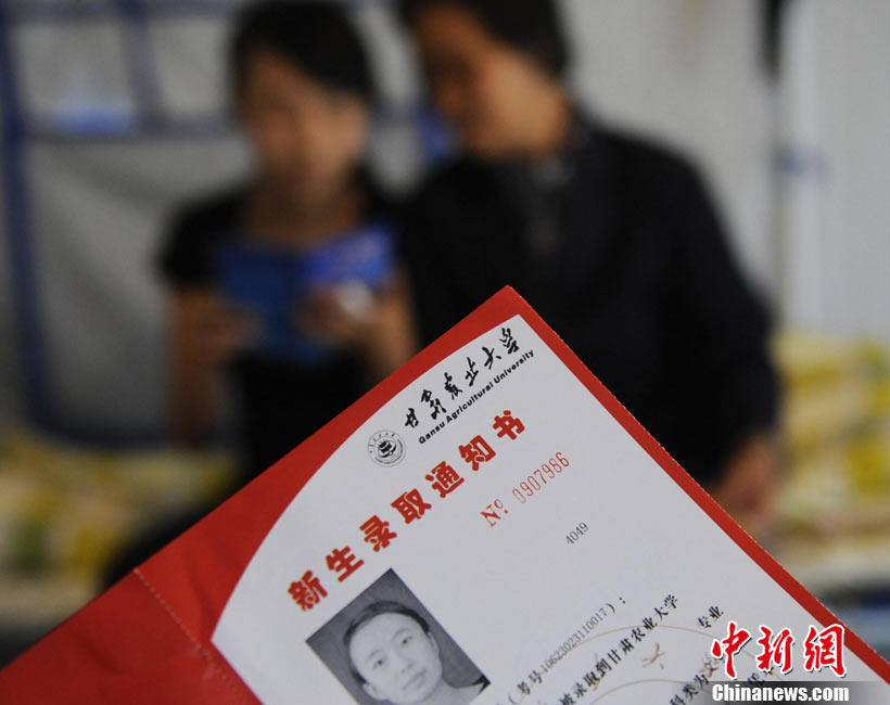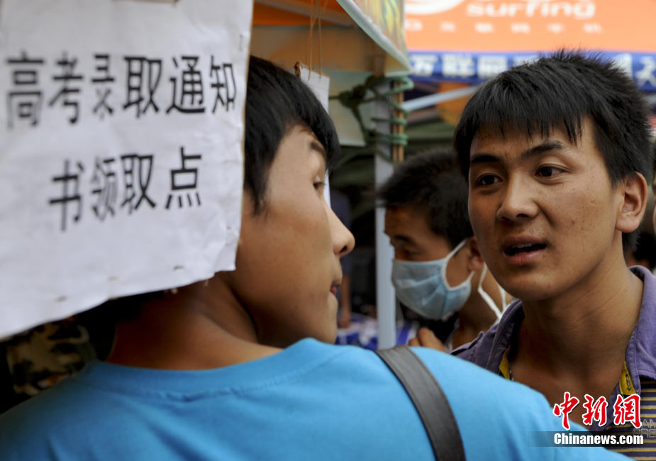 8月14日,甘肅舟曲災區的高考錄取通知書正在發放過程中,學生們接過火紅色的錄取通知書信封,眼里有藏不住的笑意。然而,有一些通知書卻永遠無法發出了。截至上午10點30分,舟曲一中收發室當天共發出7份錄取通知書,還有30多封正等待領取。中新社發 廖攀 攝