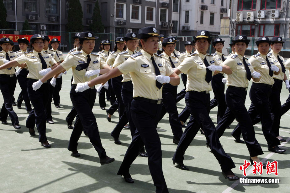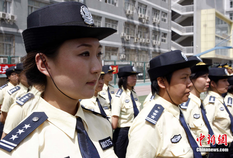 8月14日,北京警方向社會公開招募的600名校園安全護衛隊員圓滿結束培訓,經過逐一面試、統一體檢、嚴格政審以及正規技能培訓的這批校園護衛隊員將于九月暑期開學后正式上崗。圖為首批培訓結束的女護衛隊員。中新社發 任海霞 攝