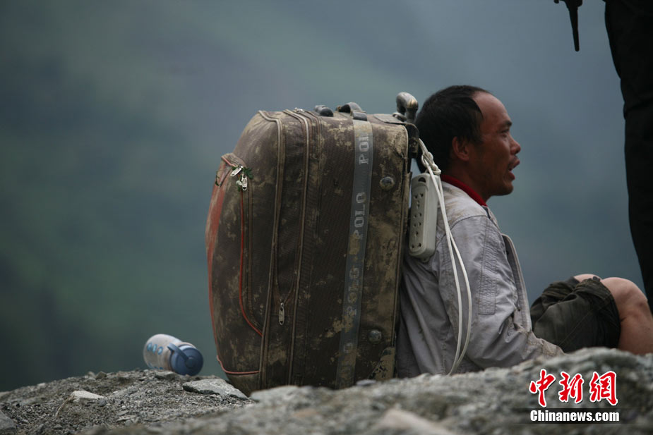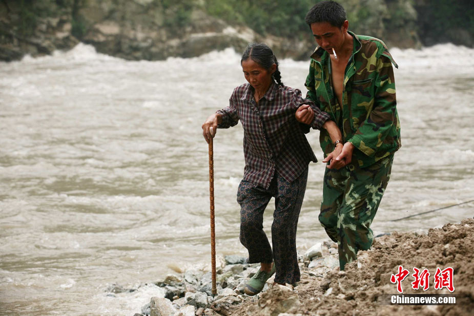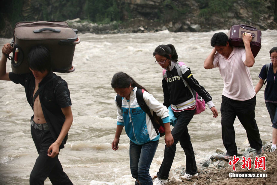 8月16日,滯留在汶川泥石流災區(qū)的群眾紛紛徒步翻山越嶺撤離自己家園,趕往都江堰、成都等安全地帶。8月14日凌晨汶川境內(nèi)多處發(fā)生泥石流災害,導致汶川境內(nèi)多條公路中斷、民房沖毀,地震災區(qū)群眾新家園受到新的創(chuàng)傷,通過武警官兵對道路三天三夜的搶險,從汶川到映秀鎮(zhèn)路段危險基本排除。 中新社發(fā) 張浪 攝