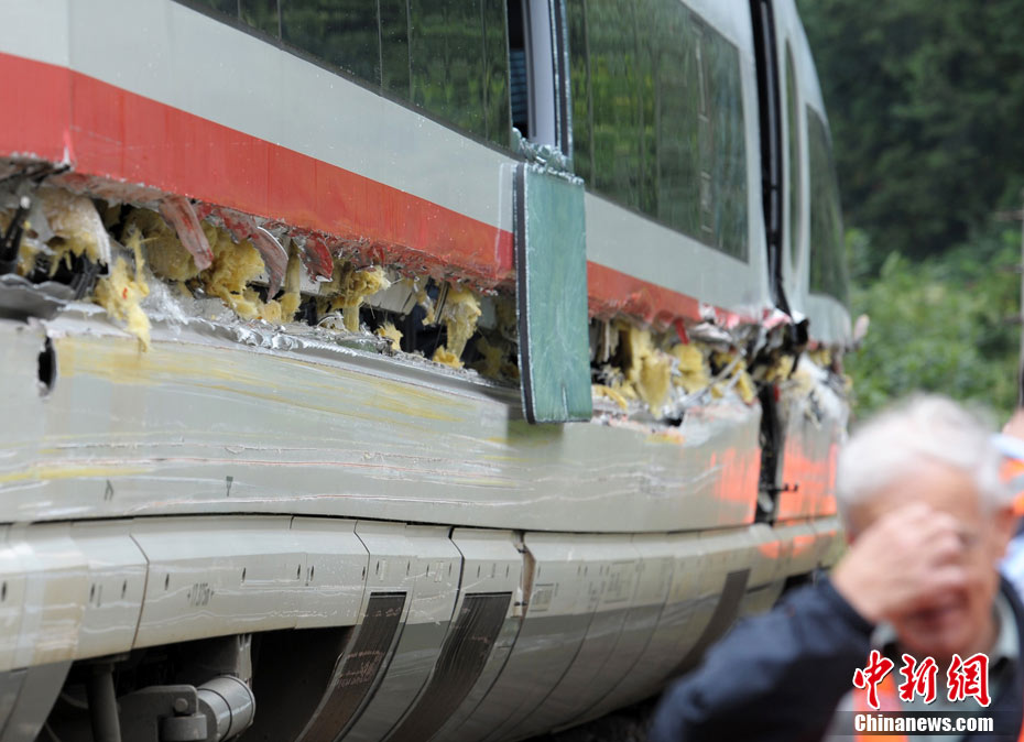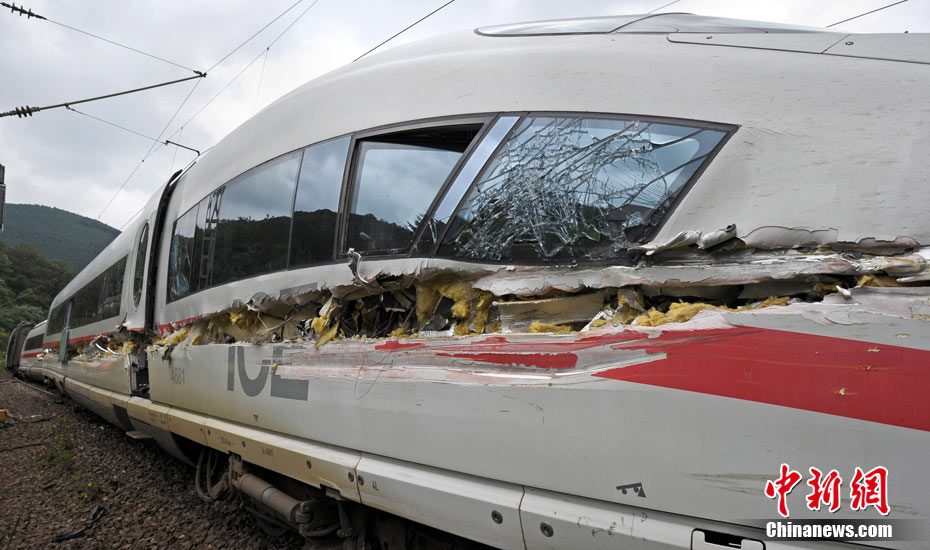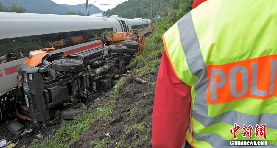 8月17日,德國法蘭克福西南部,一輛高速列車與垃圾車相撞之后部分出軌,車體損毀嚴重,至少造成10人受傷。