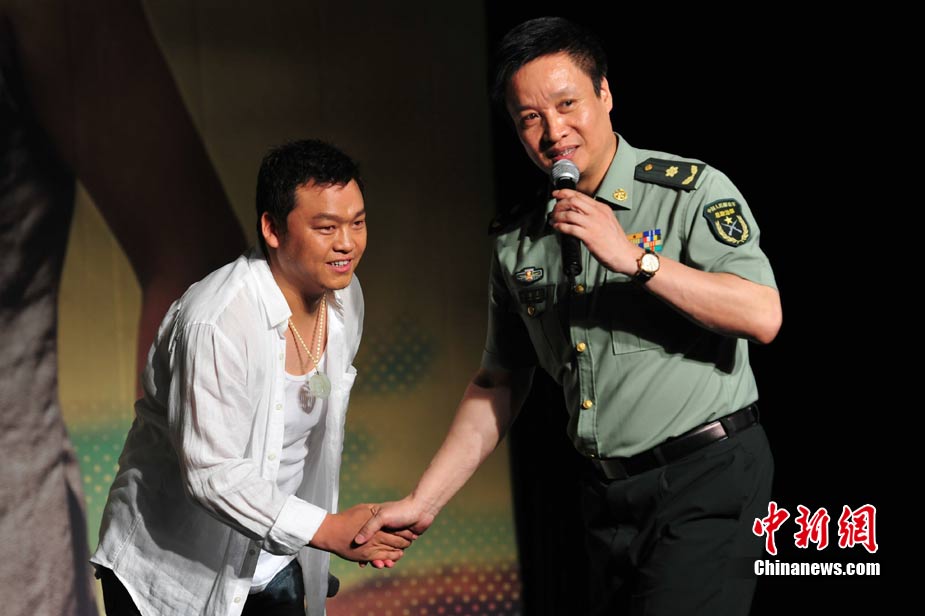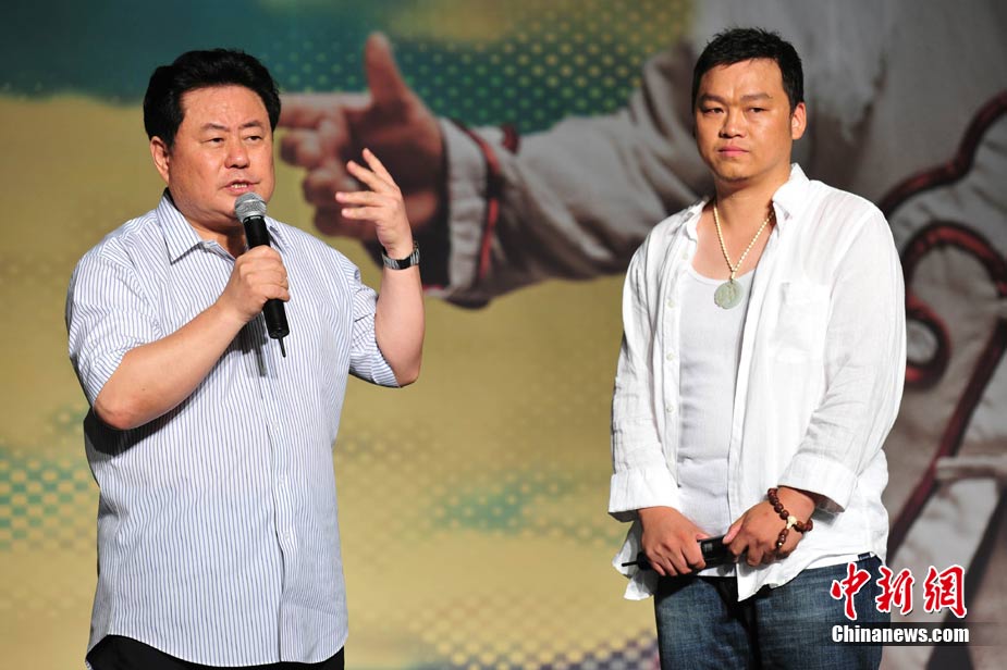 8月17日,被譽為“西部歌王”的原生態歌手高保利首張專輯《極域天音》在北京發布。著名歌唱家、藝術家王昆、徐沛東、姜昆、戴志誠到場祝賀,和高保利同為山西人的閻維文、譚晶上臺力挺老鄉讓高保利十分激動。圖為姜昆(中)和老搭檔戴志誠(左)現場不忘逗樂。中新社記者 李學仕 攝