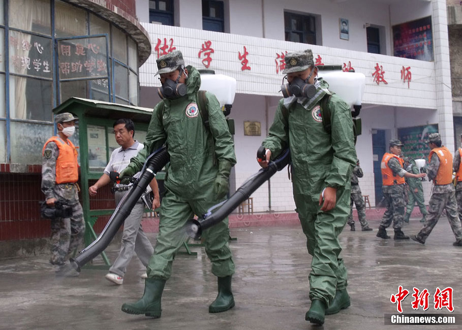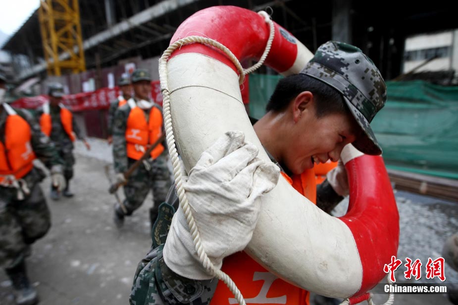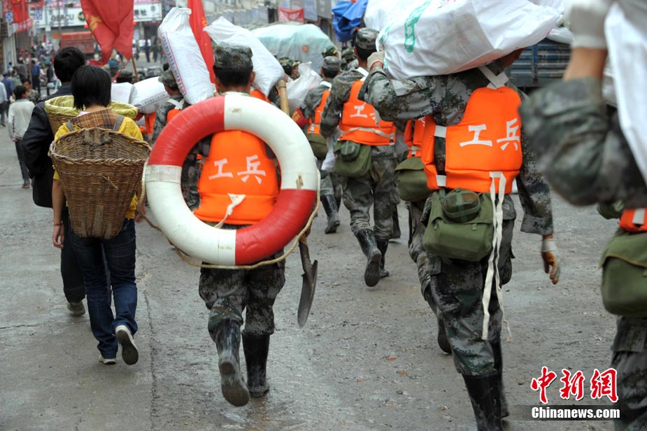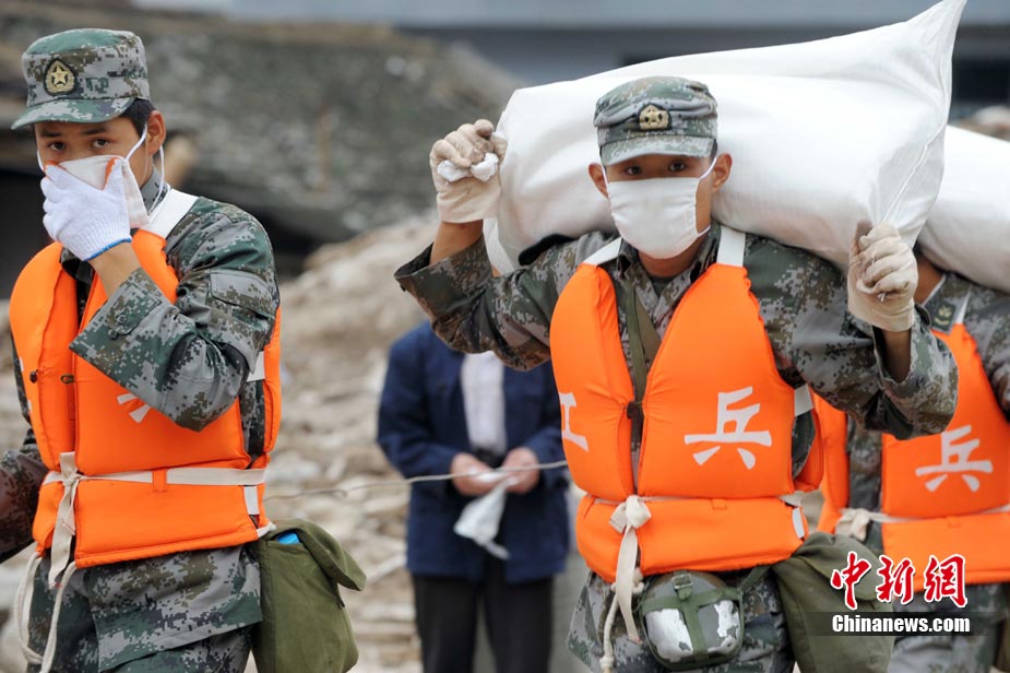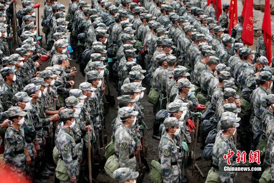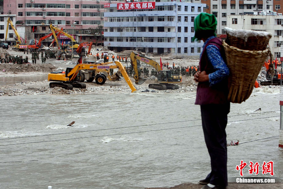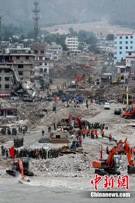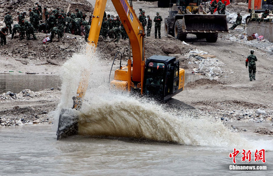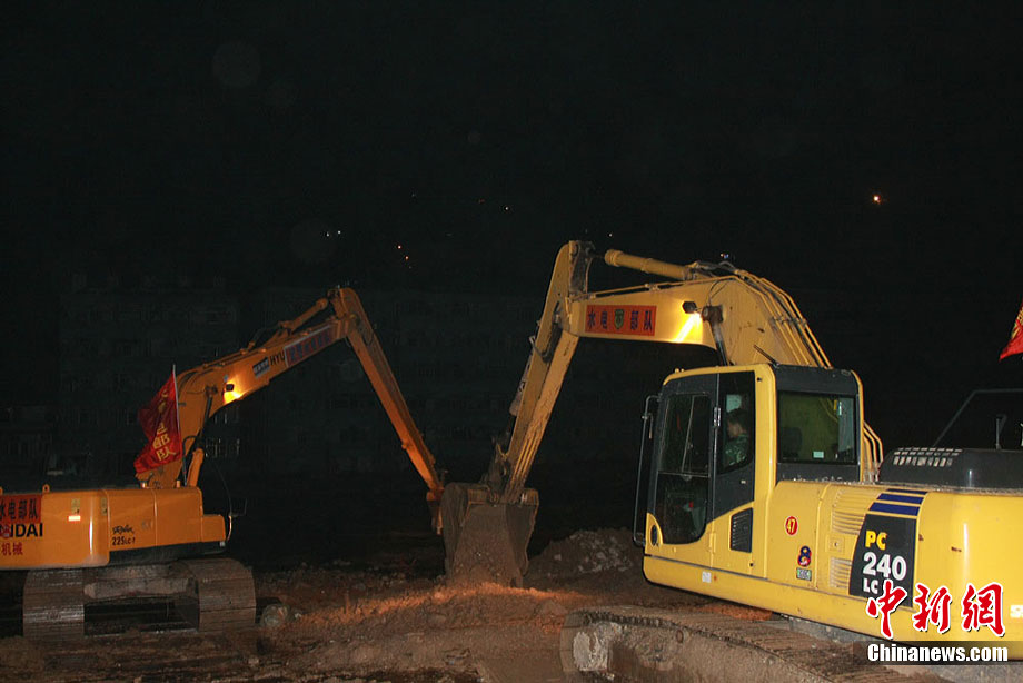 8月18日上午,由蘭州軍區某集團軍“開山斧工兵團”大型機械對舟曲特大山洪泥石流災害所致三眼峪重災區危樓進行拆除。中新社記者 陳文 攝