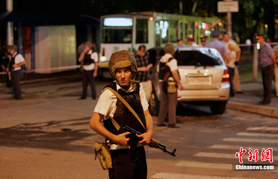 當地時間8月17日,俄羅斯北高加索聯邦區首府皮亞季戈爾斯克市中心一枚放置在車內的無外包裝的爆炸裝置在一咖啡館附近爆炸,造成30人受傷,其中6人重傷。截至18日晨,仍有29人留院接受治療。當地警方認為是北高加索武裝分子制造了此次恐怖襲擊事件。圖為爆炸發生后用手機拍攝的畫面。
