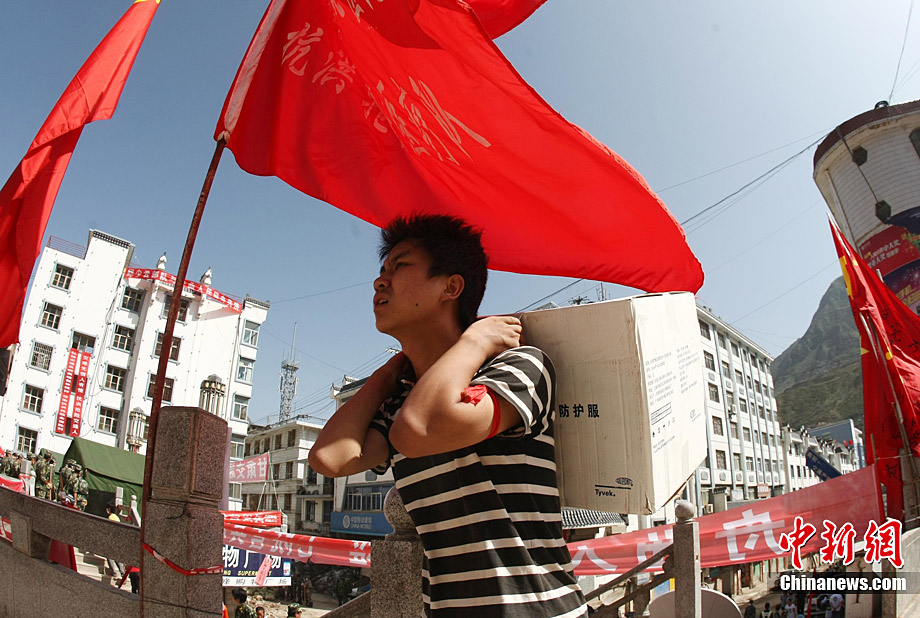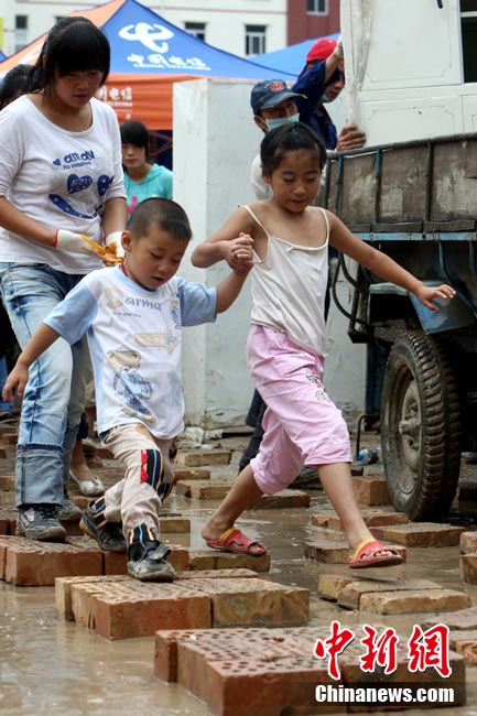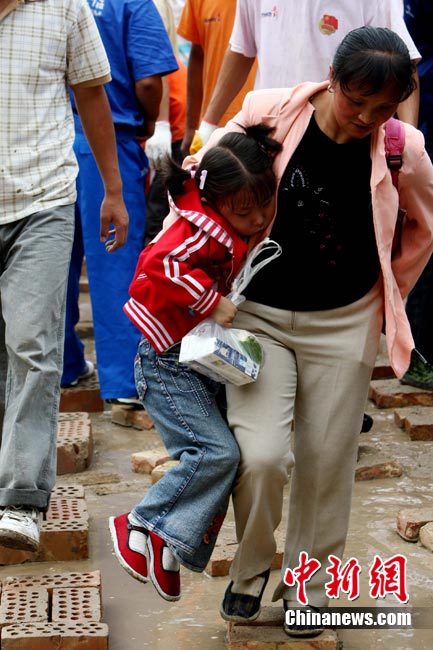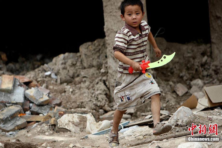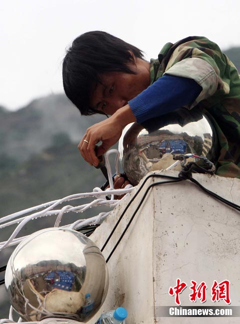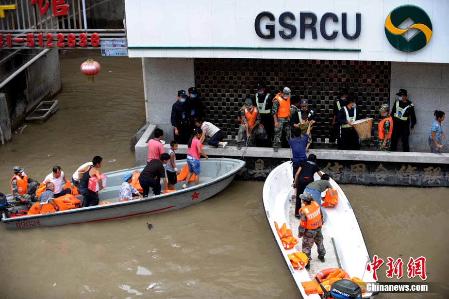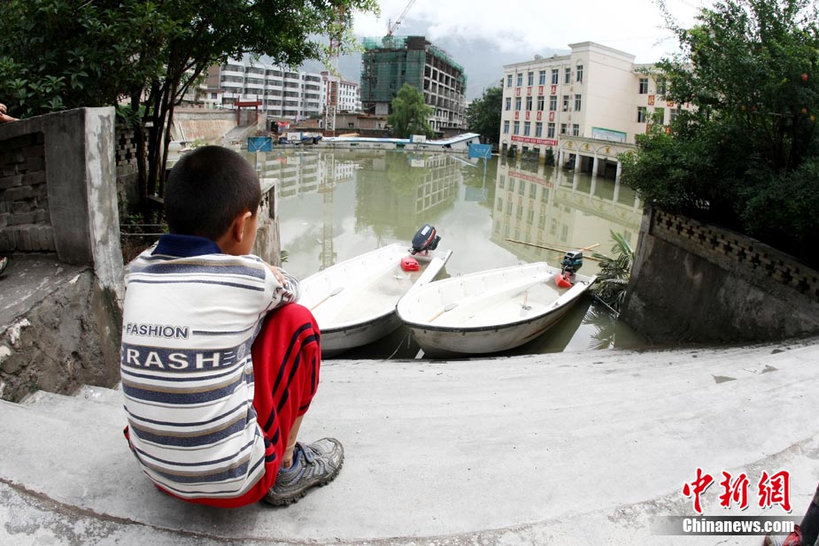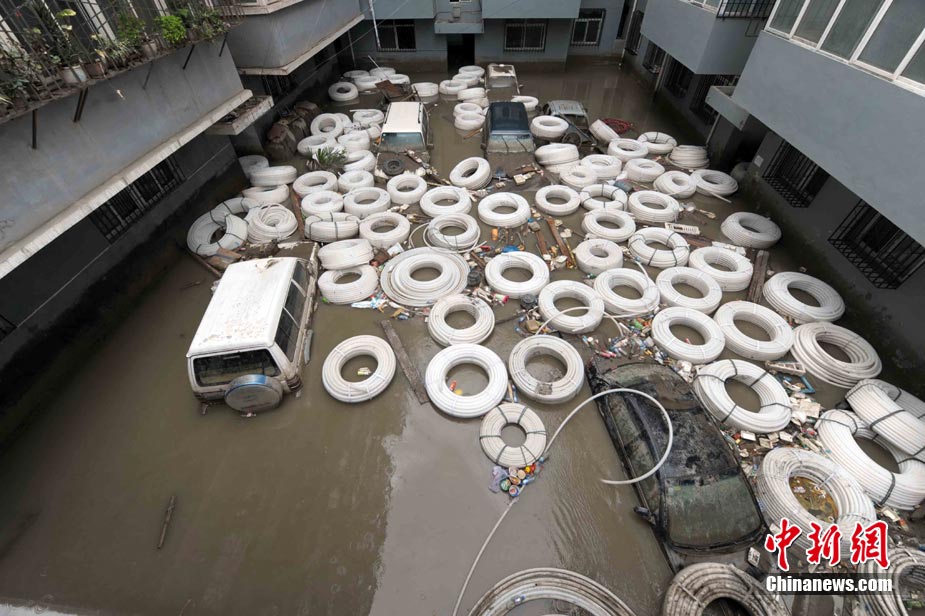 舟曲縣城因泥石流形成的白龍江堰塞湖,經過救災部隊官兵連續多日疏通,水位已經明顯下降,但后續的清淤任務仍很艱巨。圖為舟曲一受災小區內淹沒的小轎車浮出水面。中新社記者 陳文 攝