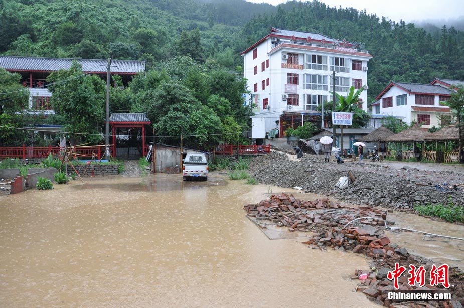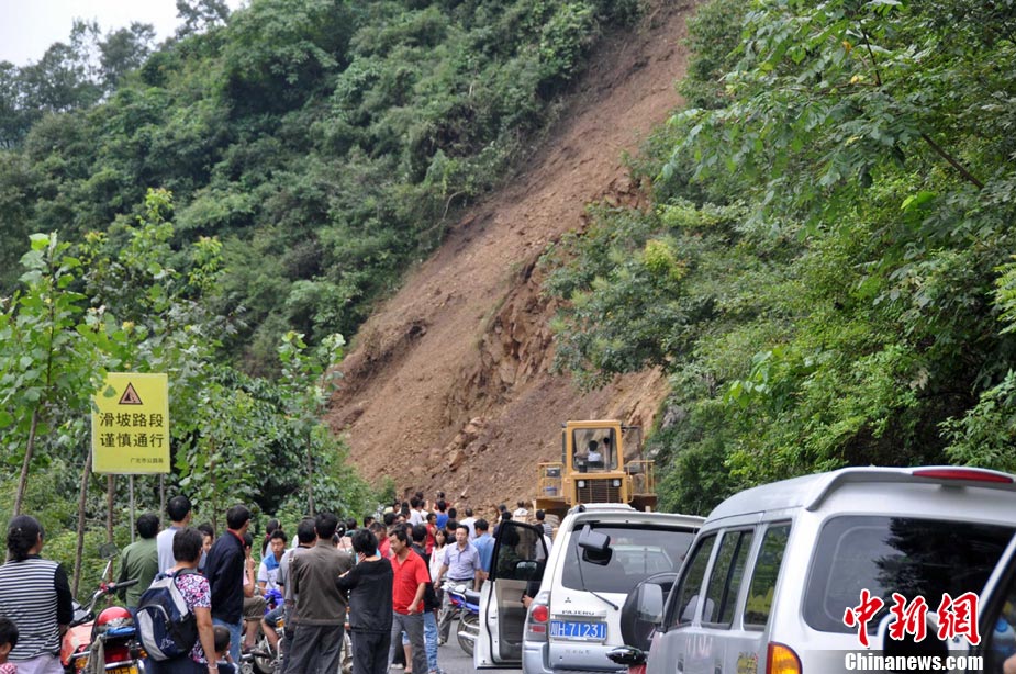 8月18日16時,四川省青川縣城前往蒿溪鄉的道路由于暴雨造成塌方,導致道路中斷,車輛通行受阻。現場由于再次出現大量山體垮塌,部分路段搶險工作被迫停止。中新社發 劉忠俊 攝