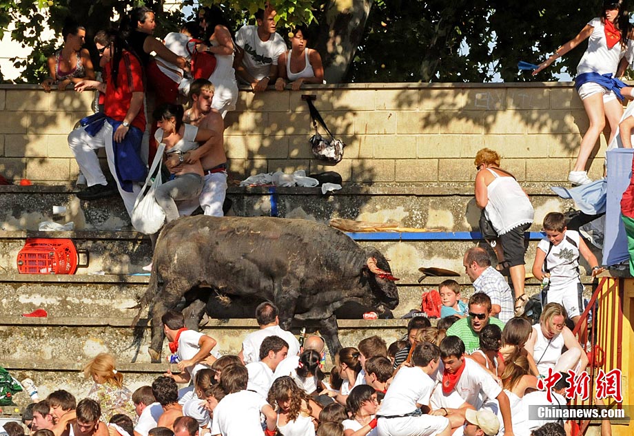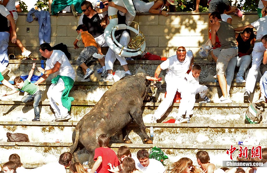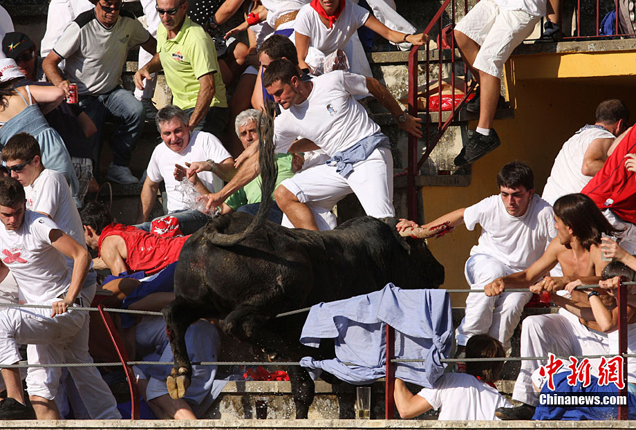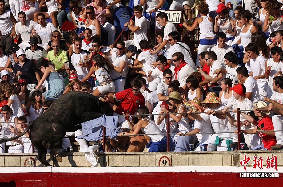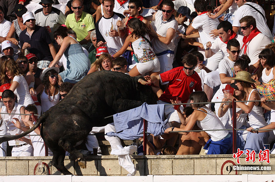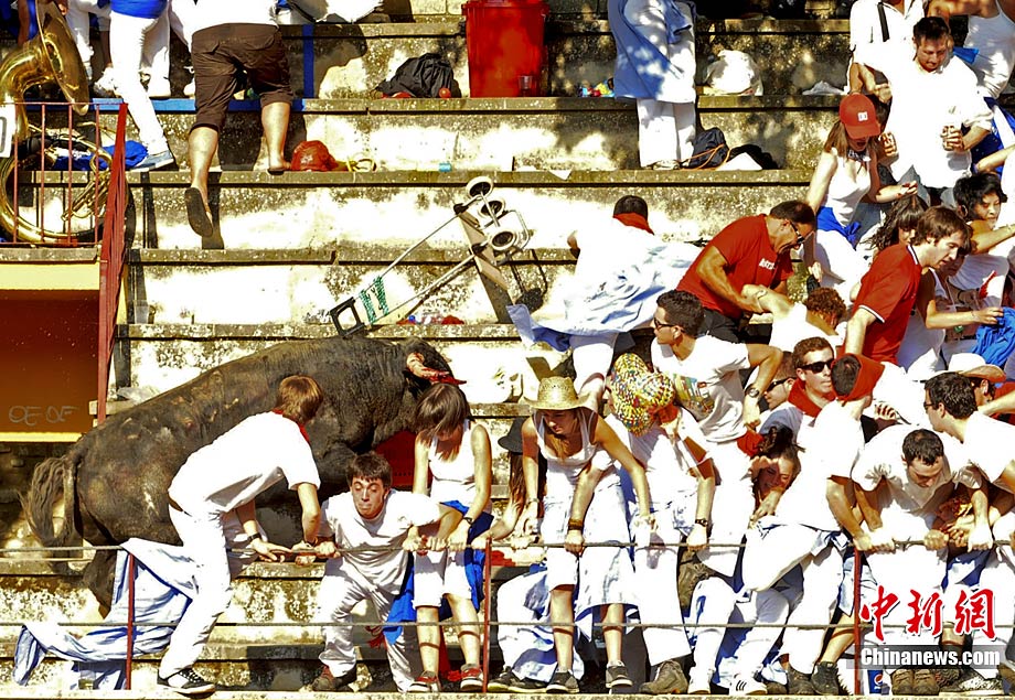 西班牙斗牛場一暴怒公牛沖入看臺