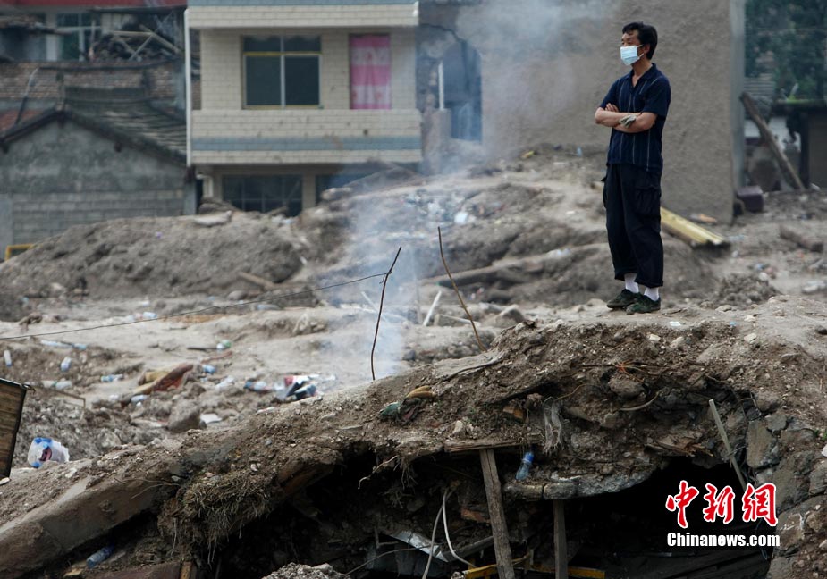 甘肅舟曲縣發生特大泥石流后,截至8月19日,已導致1364人遇難,401人失蹤,已解救1243人。洪災已過去十多天,雖然廢墟中已無生命跡象,但洪災生還者還在守望舟曲不愿離去。目前,搶險救災工作由應急救援逐步轉到受災群眾進一步安置、河道淤泥廢墟清理、恢復正常生產生活秩序和重建規劃。中新社記者 杜洋 攝