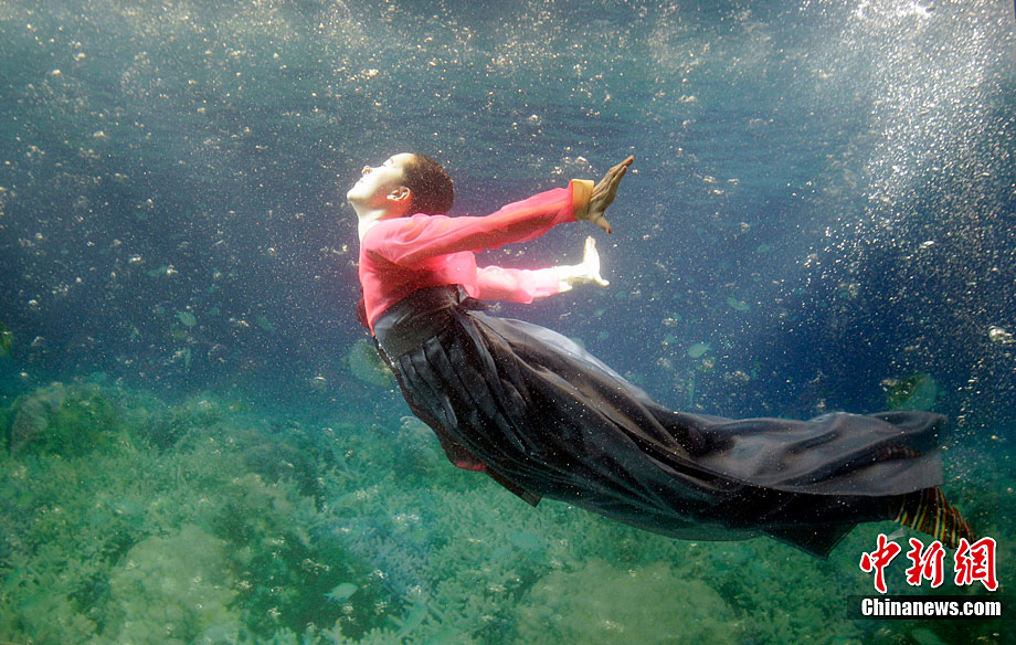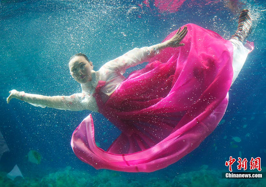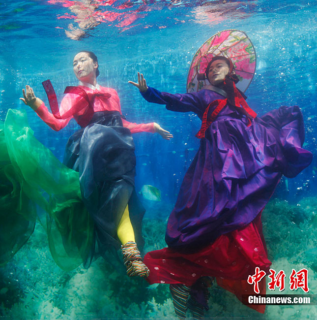 美侖美奐的水下韓服秀