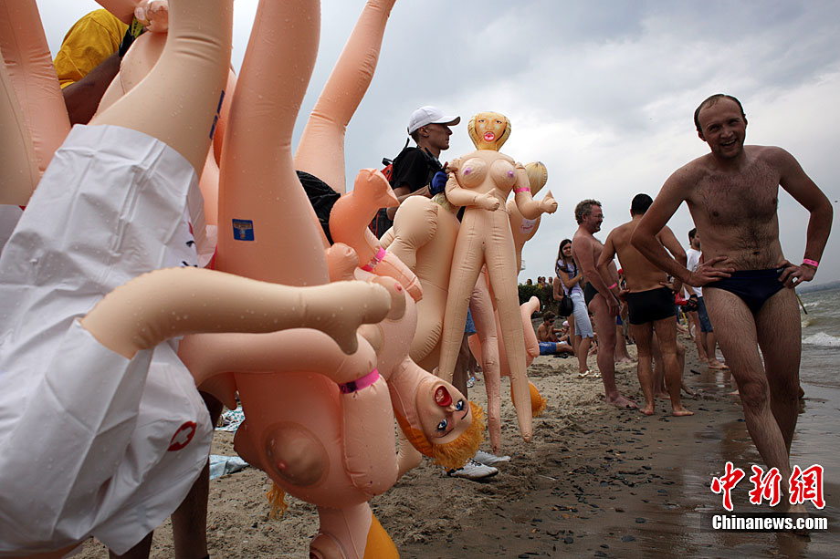 當(dāng)?shù)貢r(shí)間8月22日,一場(chǎng)別開聲面的搞笑游泳比賽在俄羅斯西伯利亞城市新西伯利亞舉行,數(shù)十名俄羅斯壯漢懷抱“充氣娃娃”躍入河中進(jìn)行游泳比賽。不過,從比賽實(shí)況來看,很顯然這些參賽者并沒有把充氣娃娃當(dāng)“伴侶”來對(duì)待,多半都當(dāng)成游泳圈,使得氣氛既搞笑卻又帶點(diǎn)詭異。