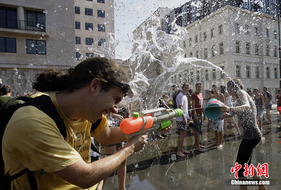 近日,在匈牙利首都布達(dá)佩斯的廣場(chǎng)上舉行了第三屆“水槍大戰(zhàn)”,民眾紛紛拿起“武器”,在炎炎夏日里展開(kāi)了一場(chǎng)別開(kāi)生面的比拼。