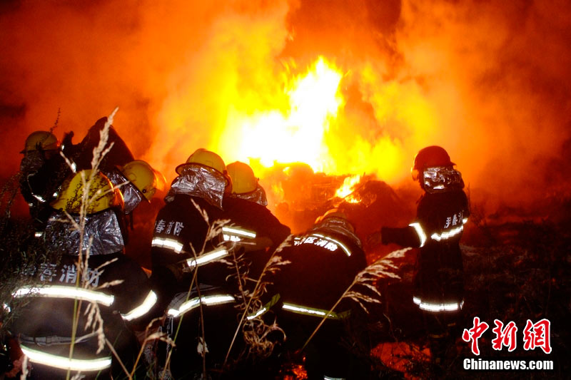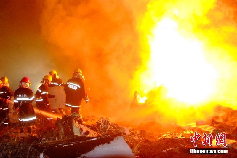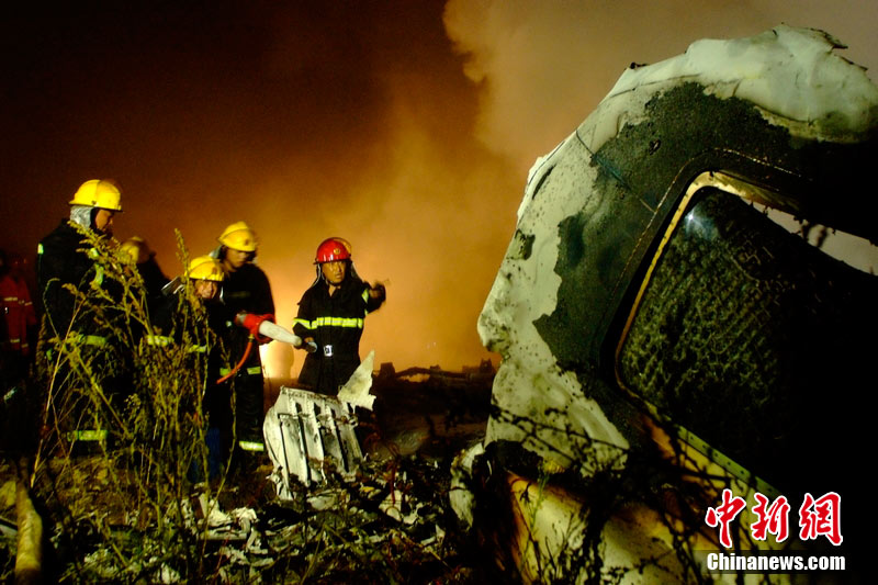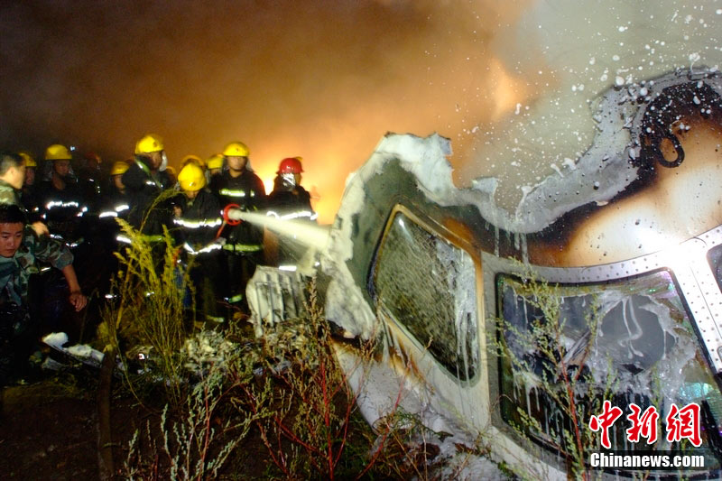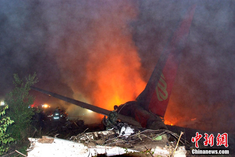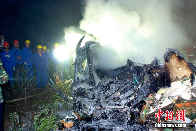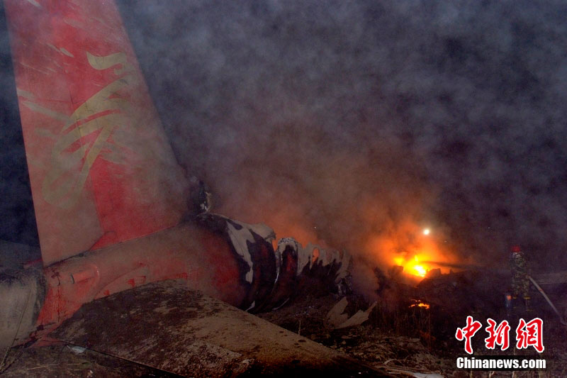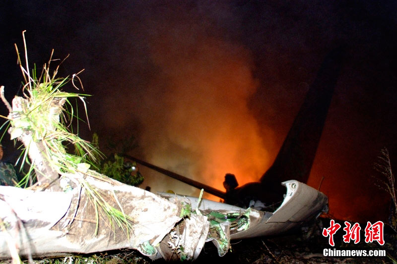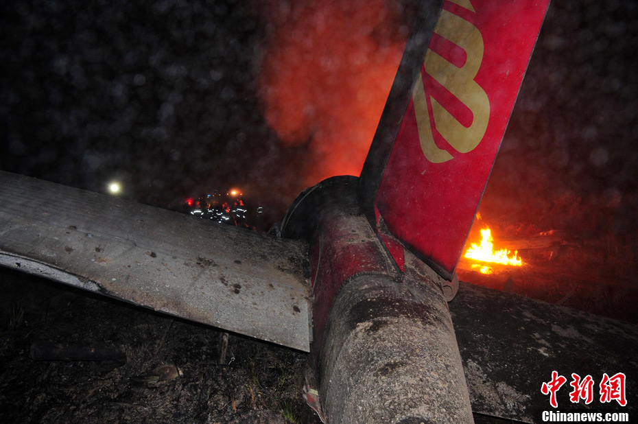 24日21時36分許,河南航空有限公司(原鯤鵬航空公司)一架由哈爾濱飛往伊春的E190型飛機在抵達伊春機場降落時失事,機上包括5名機組人員在內(nèi)共96人。失事現(xiàn)場發(fā)現(xiàn)42具遇難者遺體,其余54人獲救送醫(yī),目前無生命危險。圖為飛機失事現(xiàn)場 。陳剛 攝