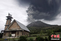 8月29日,一男子帶著孩子在印度尼西亞北蘇門答臘省卡羅區(qū)觀看錫納朋火山冒出濃煙。印度尼西亞北蘇門答臘省卡羅區(qū)的錫納朋火山28日午夜過后突然噴發(fā),火山周圍超過1萬名居民被迫緊急向外疏散。這是有記錄以來錫納朋火山自1600年來的首次噴發(fā)。