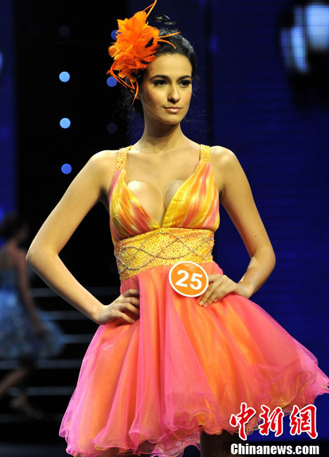 8月31日,正在廣西南寧舉行的2010“漓泉”杯亞洲超級模特大賽舉行第2場比賽決出10佳選手以及3個國際友誼獎,來自日本、韓國、蒙古、越南、緬甸、馬來西亞、菲律賓、泰國、印度以及中國十個國家的36名選手參加了比賽。圖為各國參賽模特展示風采。中新社記者 錢興強 攝