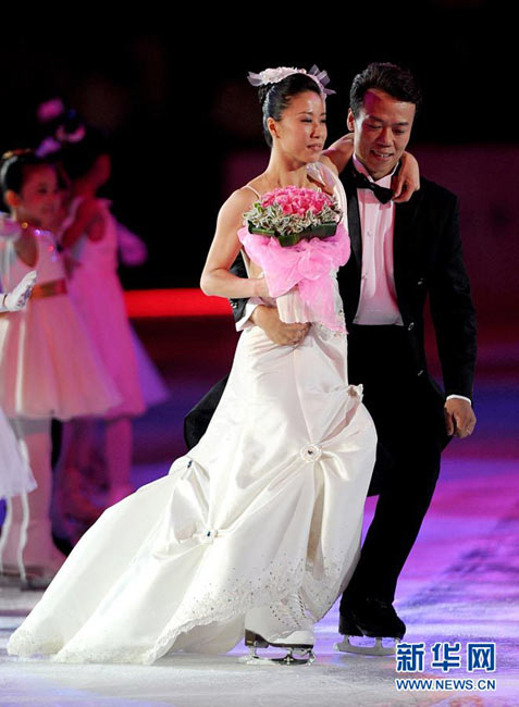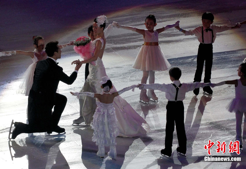 9月4日,申雪/趙宏博在首都體育館舉辦冰上婚典,并邀請(qǐng)普魯申科、亞古丁、約翰尼·威爾、淺田真央、羅切特等世界花滑巨星,聯(lián)袂世界著名編舞大師瑞內(nèi)·羅卡、歌星張靚穎、小提琴家呂思清等,為中國(guó)觀眾奉獻(xiàn)上一場(chǎng)賞心悅目、浪漫唯美的視聽(tīng)盛宴。