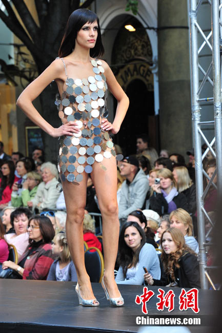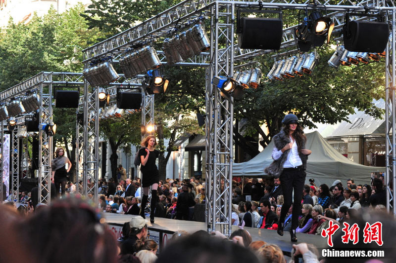捷克首都布拉格4日和5日接連兩天在市中心最繁華的商業(yè)街巴黎大街封閉車(chē)輛交通,在街道中間搭起長(zhǎng)臺(tái),向公眾表演時(shí)裝秀。其中一組兒童秀引起觀眾轟動(dòng)。黃頻 攝