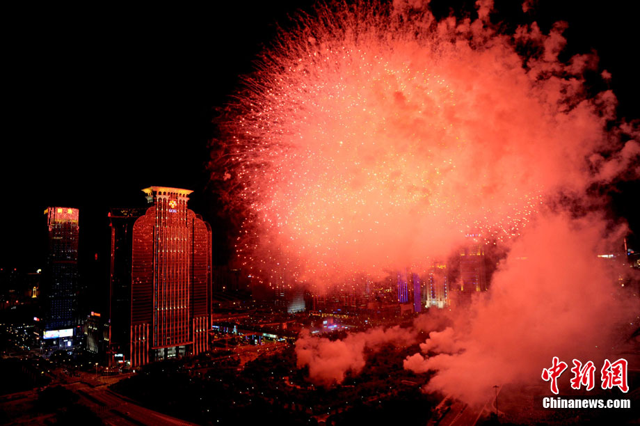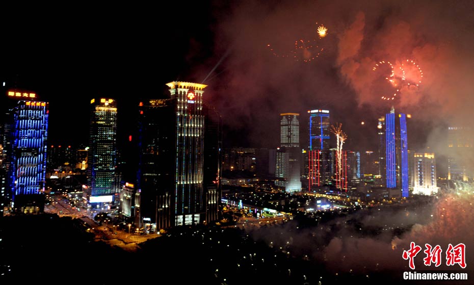 9月6日晚8點30分,深圳夜空璀璨絢麗,慶祝深圳經濟特區(qū)建立30周年焰火晚會在深南大道水晶島舉行。今晚燃放煙花數(shù)量145107發(fā),主要品種19種,全長30分鐘,共四個樂章。深圳市民分別在蓮花山公園、市民中心、深南路、彩田路、會展中心等區(qū)域觀看深圳經濟特區(qū)30周年慶典煙花晚會。中新社記者 陳文 攝