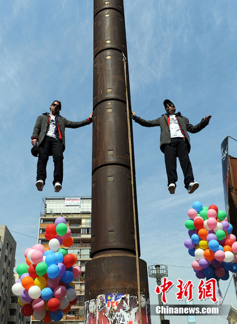 智利魔術師街頭表演漂浮魔術慶祝獨立日