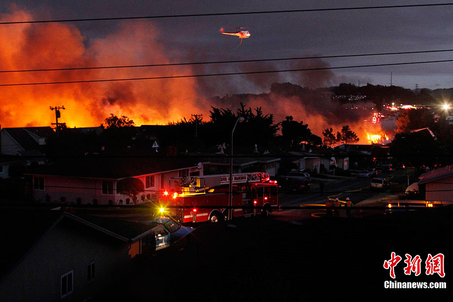 當地時間9月9日,美國加利福尼亞州舊金山國際機場附近一處住宅區發生大火,火災可能是由天然氣管道爆裂引發的。至少十幾所房屋被燒毀,數英里外都能看見滾滾濃煙。