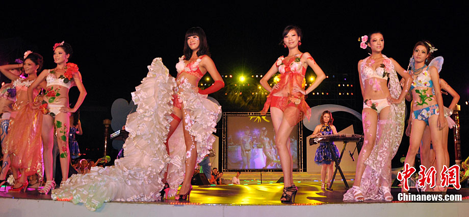 9月10日晚,在“中國(guó)茉莉之鄉(xiāng)”廣西南寧橫縣舉行的2010年中國(guó)國(guó)際茉莉花文化節(jié)上演人體花藝花繪魔幻秀。本屆茉莉花文化節(jié)將舉辦中國(guó)國(guó)際茉莉花文化節(jié)音樂節(jié)、中國(guó)花文化國(guó)際學(xué)術(shù)研討會(huì)、“花海·音樂之旅”觀光旅游活動(dòng)、全國(guó)茉莉花茶市形勢(shì)分析會(huì)等活動(dòng)。圖為模特秀花藝。中新社記者 楊志雄 攝