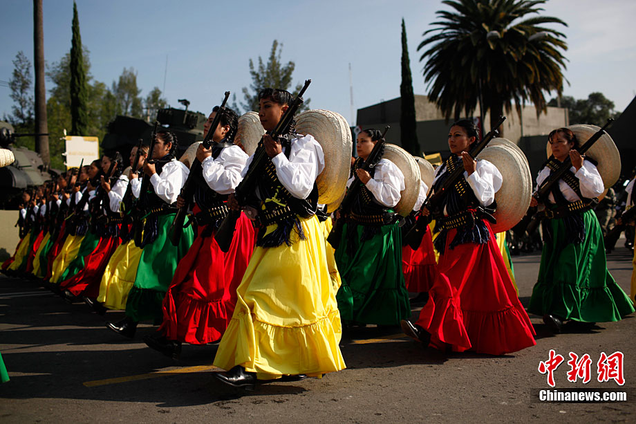 當地時間9月10日,墨西哥獨立200周年慶典彩排在墨西哥城舉行。這次彩排是為即將于9月16日舉行的慶墨西哥獨立革命200周年的大閱兵作準備。