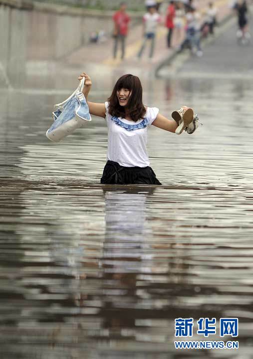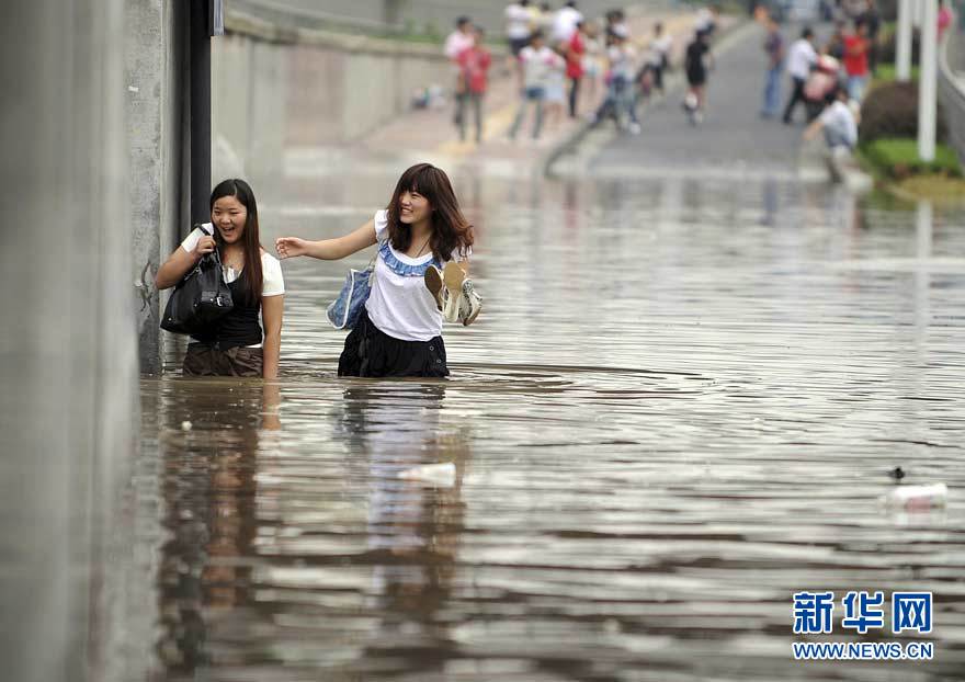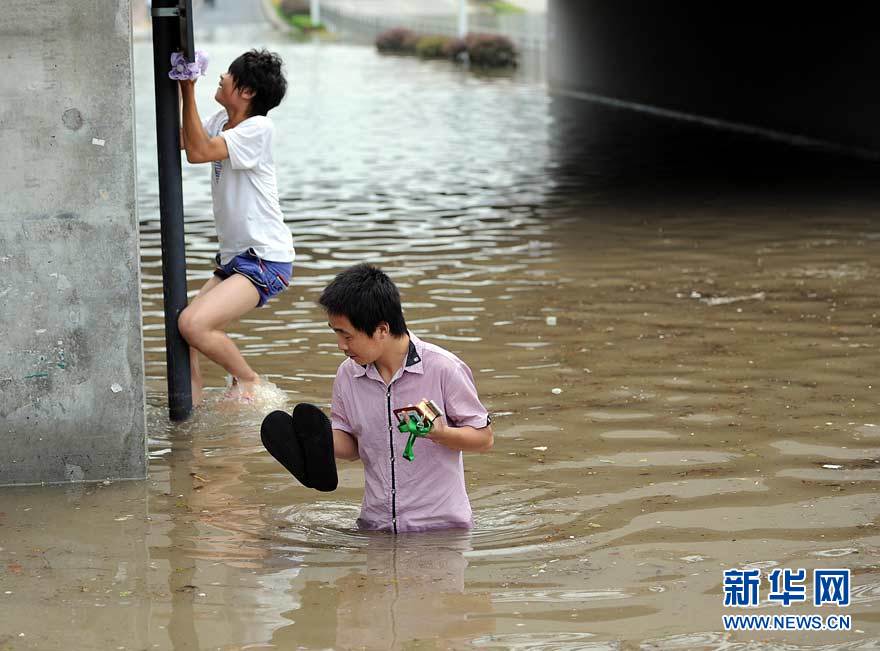 9月11日下午,杭州市濱江區(qū)火炬大道鐵路涵洞內(nèi)積水嚴(yán)重,行人涉水而行。受“莫蘭蒂”影響,自9月11日凌晨4時起,杭州市濱江區(qū)突降暴雨,多處地段出現(xiàn)積水,據(jù)氣象部門測算,該區(qū)內(nèi)最大降雨量超過230毫米,為歷史罕見。胡元勇 攝 圖片來源:新華網(wǎng)