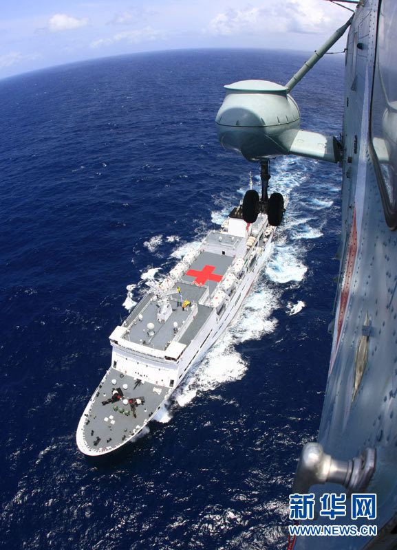 執行“和諧使命—2010”任務的中國“和平方舟”號醫院船安全航行5300余海里后,于15日駛抵亞丁灣。2天后,醫院船將與正在亞丁灣海域執行護航任務的中國海軍第六批艦艇編隊會合,并為護航官兵展開全方位的醫療服務。“和平方舟”號醫院船8月31日從中國舟山啟航,前往亞丁灣海域及吉布提、肯尼亞、坦桑尼亞、塞舌爾、孟加拉國等亞非五國執行“和諧使命—2010”任務。查春明 攝 (圖片來源:新華網)