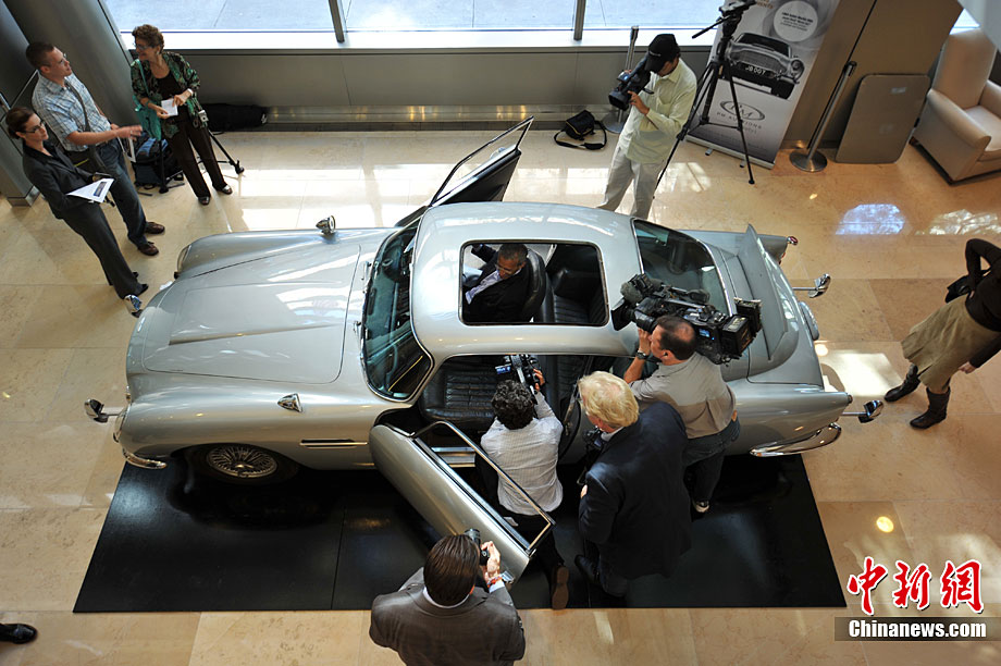 曾經(jīng)在“007”系列電影《金手指》和《雷霆萬鈞》中作為主人公詹姆斯·邦德座駕的阿斯頓·馬丁DB5跑車將于2010年10月27日在英國倫敦巴特西公園(Battersea Evolution)拍賣。圖為這款轎車正在美國紐約蘇富比拍賣行展出。