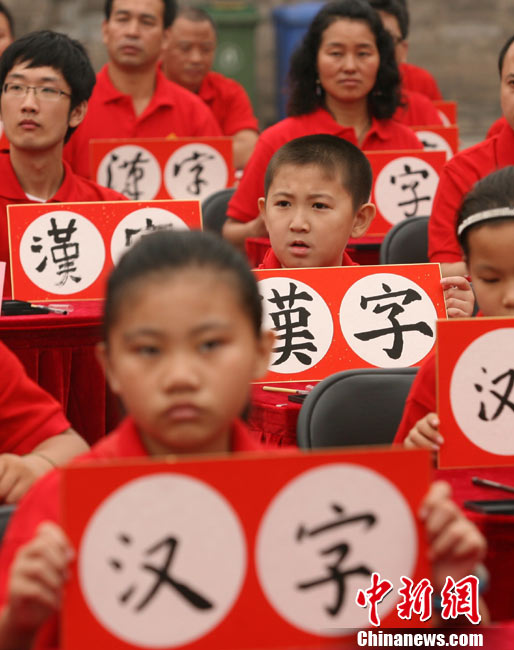 9月16日,北京兩百名書法愛好者在太廟前書寫各種字體的漢字,并共同完成“提筆、蘸墨、落筆、展卷”傳統(tǒng)程序。當(dāng)日,首屆“兩岸漢字藝術(shù)節(jié)”在北京太廟開幕。本次藝術(shù)節(jié)由中國藝術(shù)研究院、中華文化聯(lián)誼會、臺灣文化總會、河南省安陽市政府聯(lián)合主辦,中國藝術(shù)研究推廣中心、臺灣中華新文化發(fā)展協(xié)會共同承辦。中新社發(fā) 蘇丹 攝