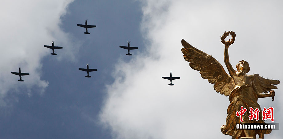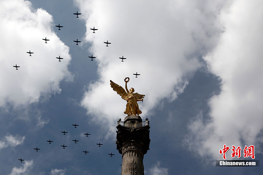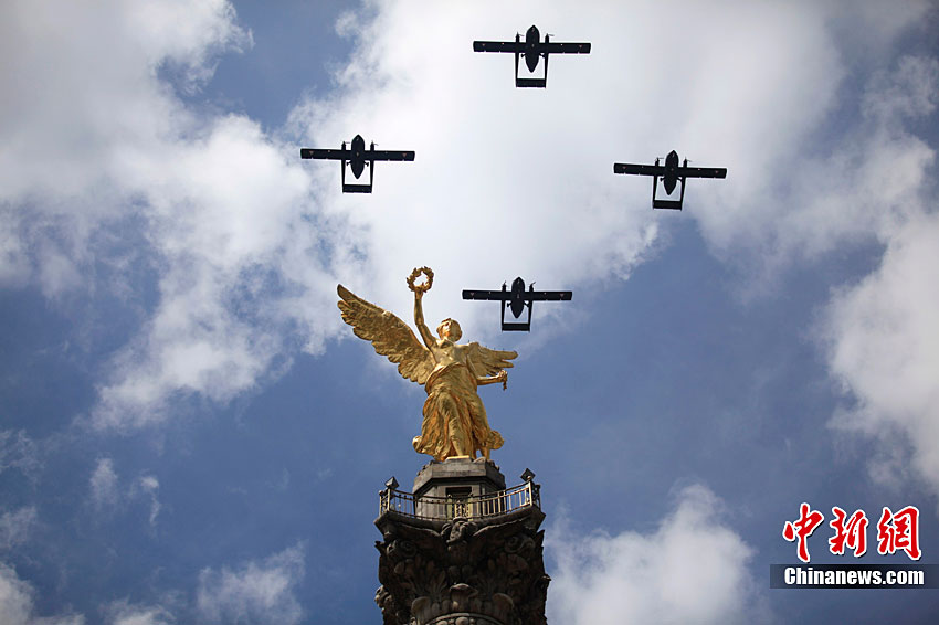 9月16日,在墨西哥首都墨西哥城,中國人民解放軍儀仗方隊參加墨西哥獨立200周年慶典閱兵。參加此次閱兵的中國儀仗隊由36人組成,其中34人編成方陣,最前方是1名旗手、5名護旗手,后隨1名陸軍指揮官,其身后列3隊,陸海空各1列、每列9人。這是解放軍儀仗部隊首次走出國門遠赴海外參加活動。
