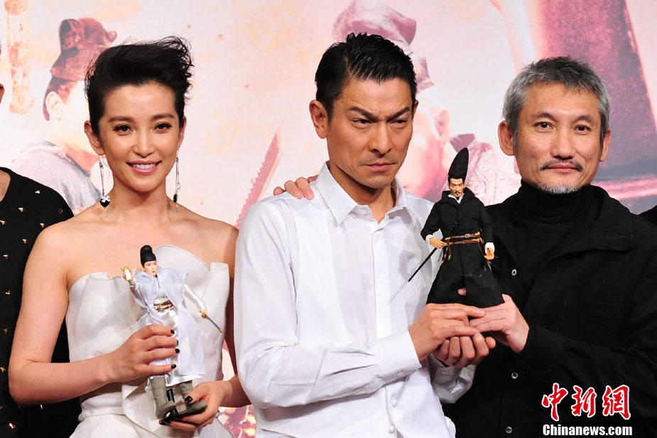 9月19日,由徐克導演、陳國富監制、洪金寶擔任武術指導的華誼兄弟大片革命之作《狄仁杰之通天帝國》在京舉行亞洲首映發布會。導演徐克攜主演劉德華、李冰冰、劉嘉玲、梁家輝、鄧超全陣容亮相,這也是五大主演首次同臺宣傳。主演狄仁杰的劉德華在現場大開玩笑,多次引爆笑彈。該片將于9月29日上映。圖為劉德華扮起觀音姿勢。中新社記者 李學仕 攝