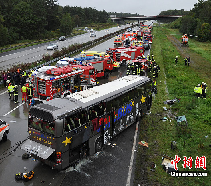 當(dāng)?shù)貢r(shí)間9月26日,德國(guó)一輛旅游大巴在柏林南部朗斯多夫的高速公路上發(fā)生嚴(yán)重交通事故,造成至少10人死亡,30人受傷。