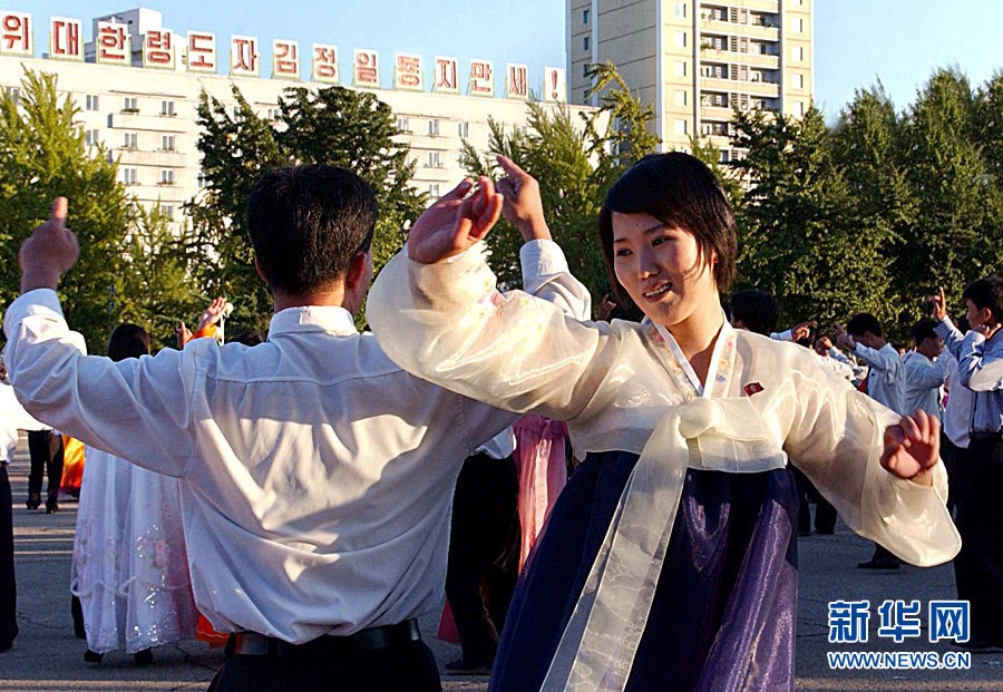 9月28日,朝鮮青年學(xué)生在首都平壤舉行舞蹈集會,慶祝朝鮮勞動黨代表會議當(dāng)天推舉金正日為朝鮮勞動黨總書記。圖片來源:新華網(wǎng)