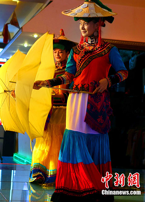 西昌市一家彝族特色餐館,9月29日表演民族舞蹈、展示民族服飾,表達民族情懷,祝福中國第二顆繞月探測衛星——“嫦娥二號”圓滿升空。據悉,“嫦娥二號”任務擬定于9月30日開始加注火箭推進劑,10月1日至3日擇機實施衛星發射。中新社記者 宋吉河 攝