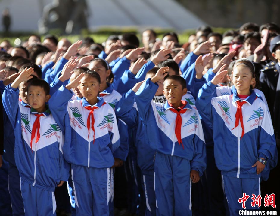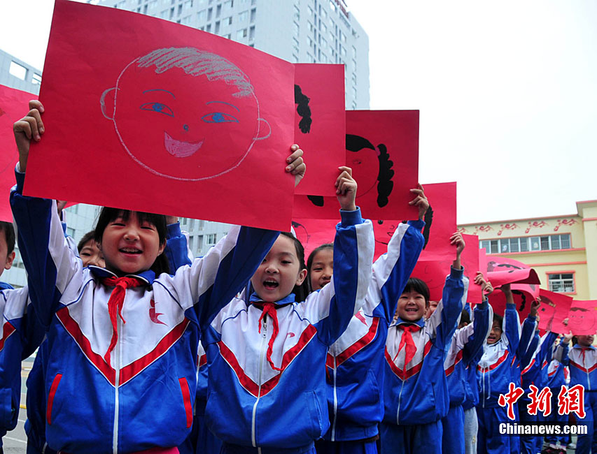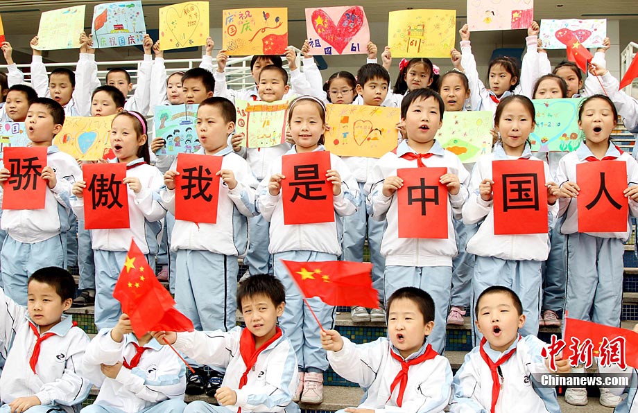 9月27日,一場以“我驕傲,我是中國人”為主題的國慶61周年誦讀繪畫賽活動在蘇州市一所小學(xué)校舉行,該校百余名一、二年級學(xué)生以集體誦讀和繪畫展示等形式,表達對偉大的祖國贊美與衷心祝福。王建中 攝 圖片來源:cnsphoto