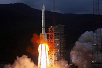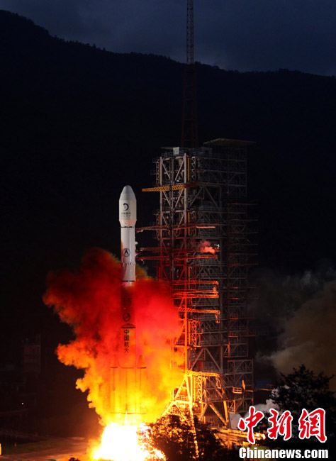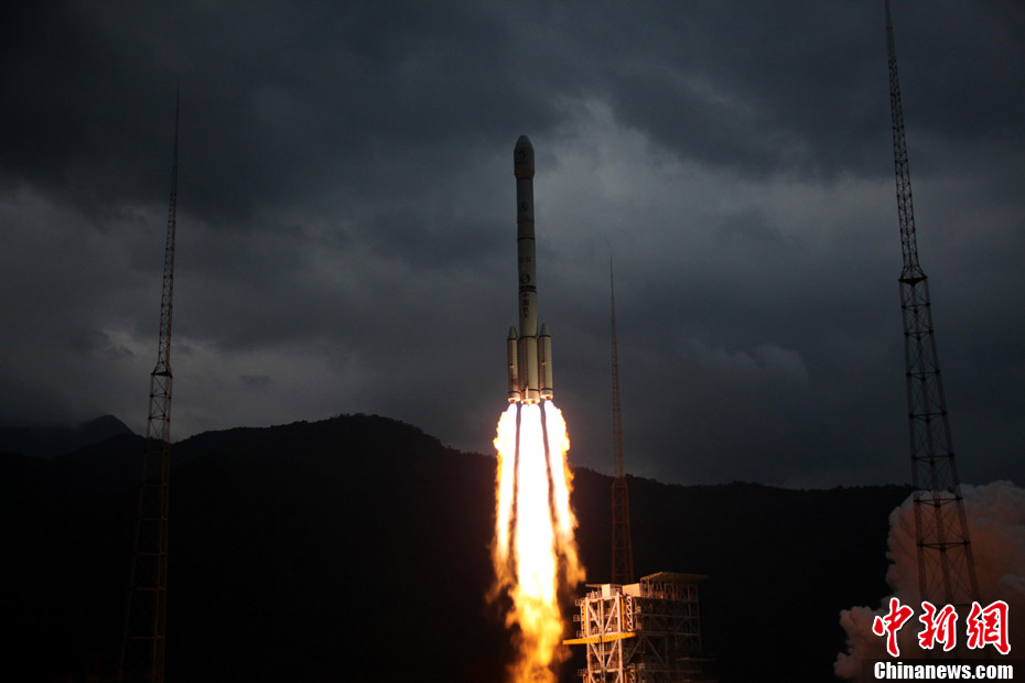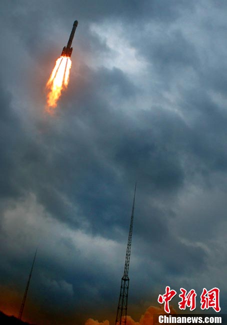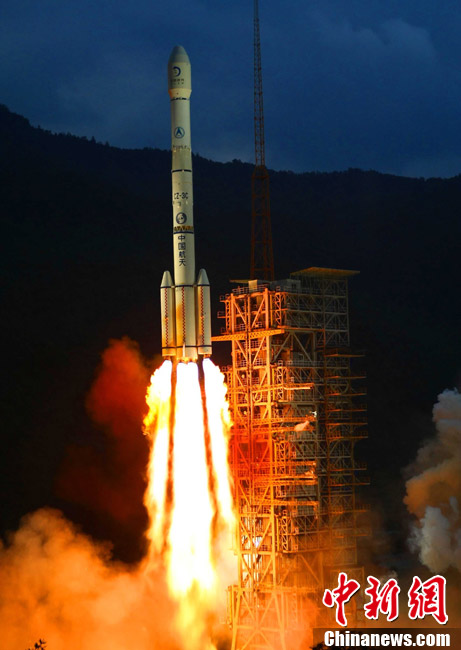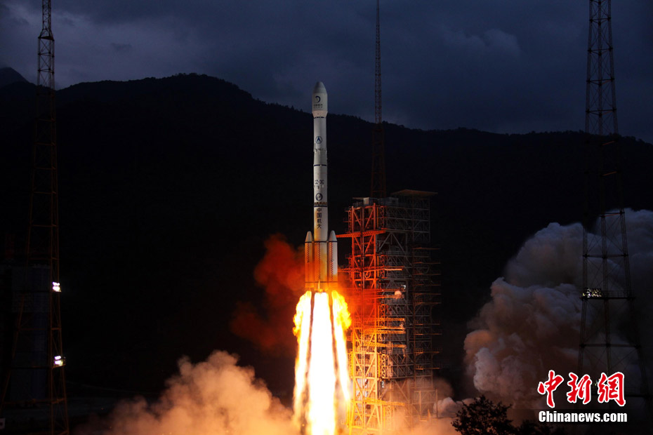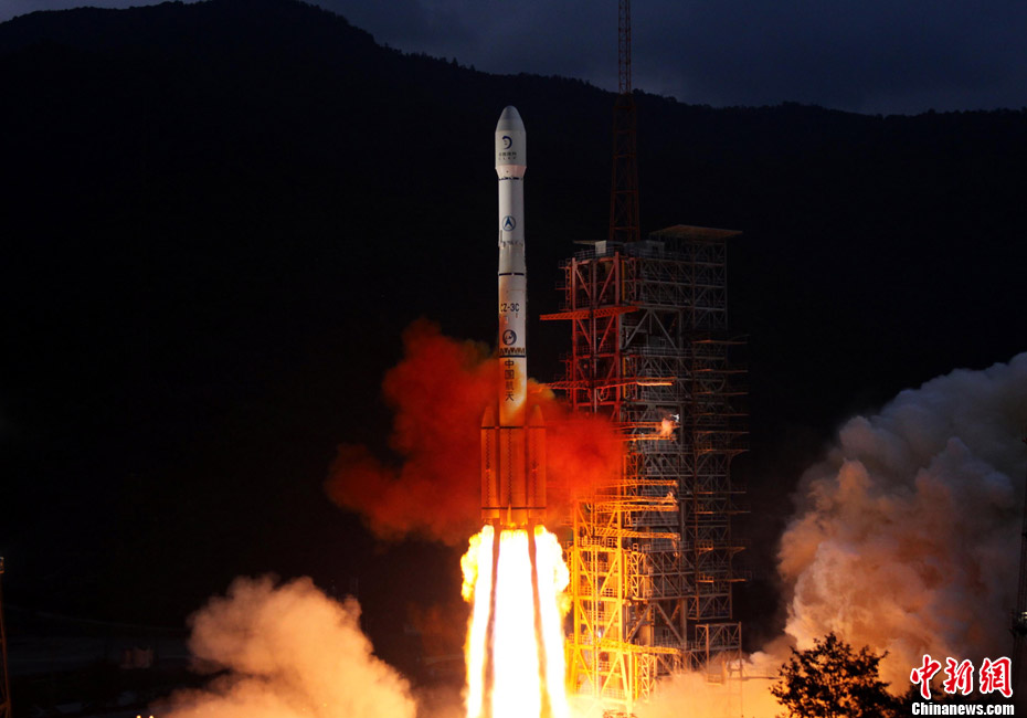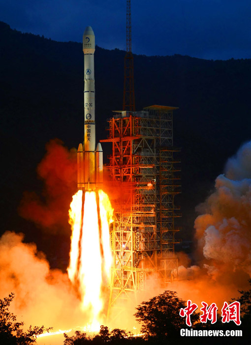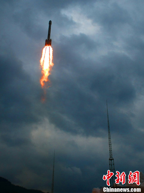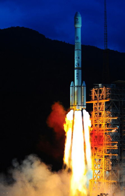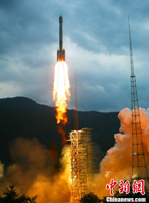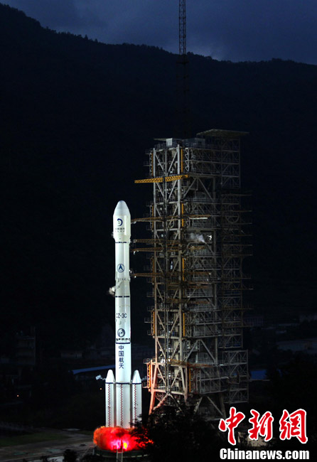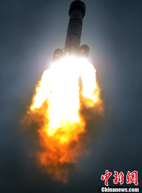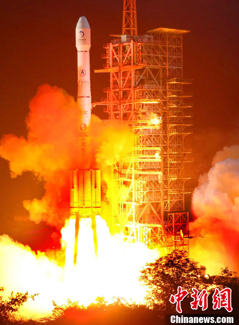 2010年10月1日18時(shí)59分57秒,中國探月工程二期的技術(shù)先導(dǎo)星“嫦娥二號(hào)”在西昌衛(wèi)星發(fā)射中心由“長(zhǎng)征三號(hào)丙”運(yùn)載火箭發(fā)射升空。中新社記者 宋吉河 攝
