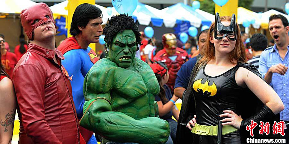 10月2日,美國(guó)洛杉磯舉行“超級(jí)英雄”大聚會(huì),1580名“蝙蝠俠”“超人”“綠巨人”“大力水手”等“超級(jí)英雄”齊聚洛杉磯,打破了此前1501名“超級(jí)英雄”聚會(huì)的吉尼斯世界紀(jì)錄。
