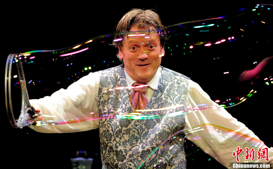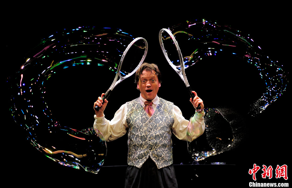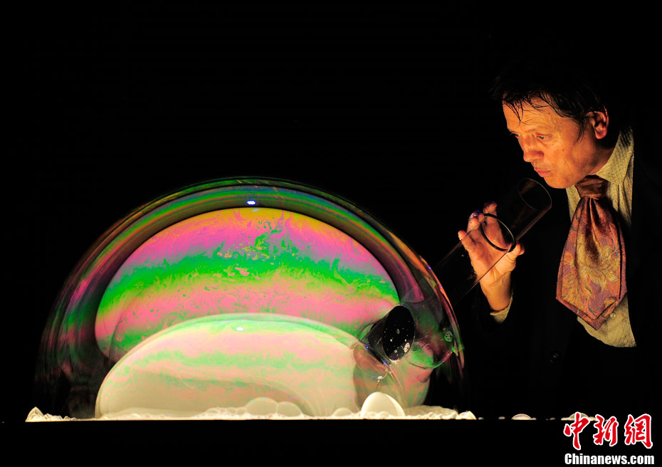 當地時間10月2日,西班牙肥皂泡魔術師佩普-布奧表演他的拿手好戲“泡泡秀”。
