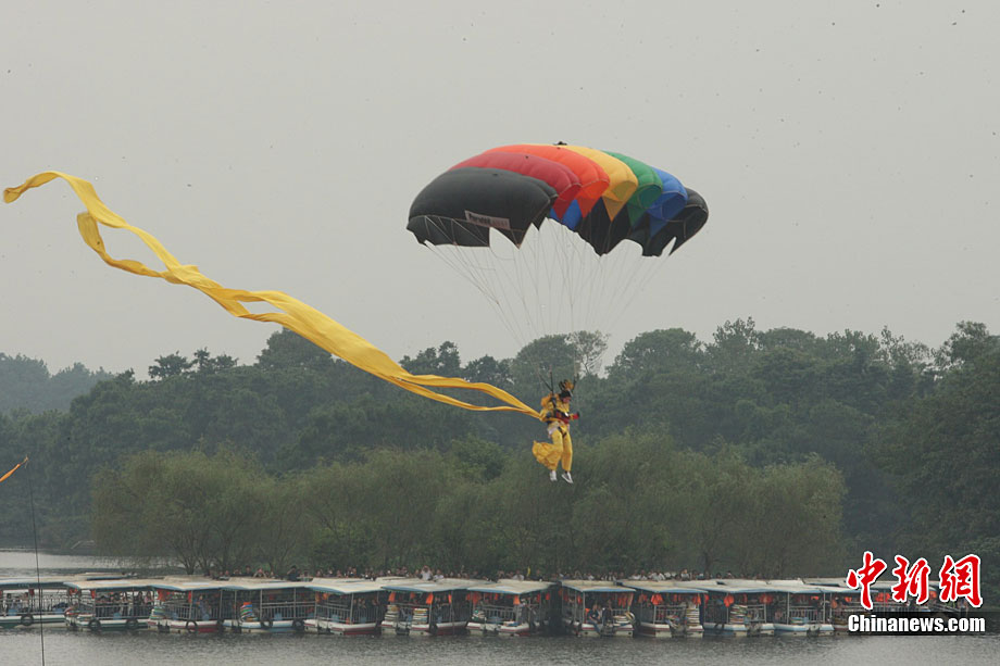 重慶上演空中特技 女郎機翼上跳空中芭蕾