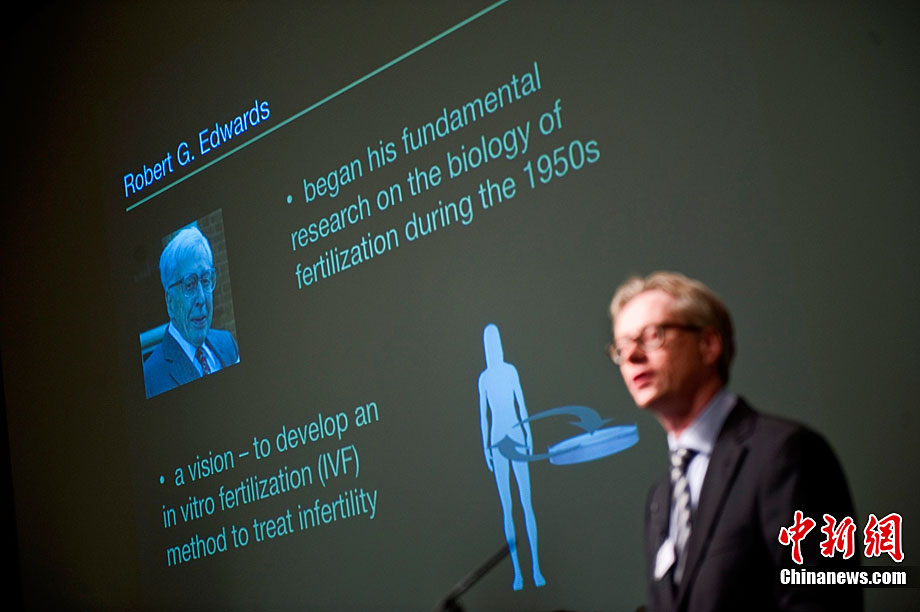 被譽為“試管嬰兒之父”的英國科學家羅伯特·愛德華茲10月4日獲得諾貝爾生理學或醫學獎,他因身體欠佳未對獲獎消息發表感言。圖為2008年7月12日,愛德華茲(左)與世界第一個試管嬰兒路易斯(右)和她的兒子、母親合影。